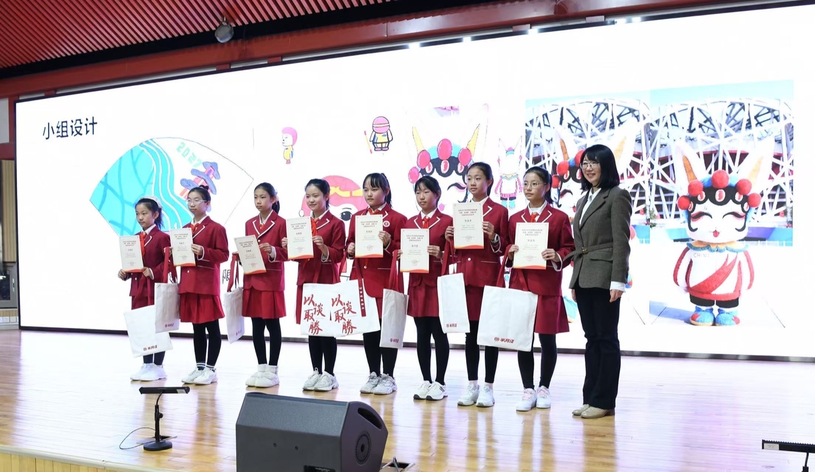 在互动分享环节,贡院小学的学生代表们登台亮相,精彩呈现了一系列充满童趣与创意的赛事IP设计方案。有的巧妙将“北京”二字进行象形化处理,融入会徽设计;有的以经典卡通形象孙悟空为灵感,打造了活力四射的吉祥物“京跃”;还有融合京剧元素与运动活力的兔子形象“京兔兔”,以及紧扣2027羊年主题、寓意温暖祥瑞的“暖阳”“祥祥”等作品。这些构思新颖、情感真挚的设计,不仅展现了青少年对田径运动的热爱,更流露出他们对家乡即将承办国际大赛的由衷自豪。为鼓励青少年积极参与赛事文化共创,组委会特别为参与分享的学生颁发了纪念证书,以资鼓励。