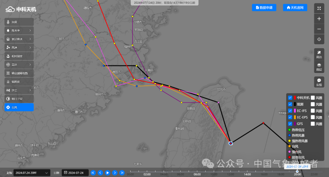 以今年以来登陆我国的最强台风“格美”为例,早在7月20日,天机系统已经预测出了其在台湾和福建两次登陆的位置;对比22日各个模式的路径预测和7月25日台风在台湾的实际登陆地点和移动路径,其中天机系统、GFS的准确度更高。