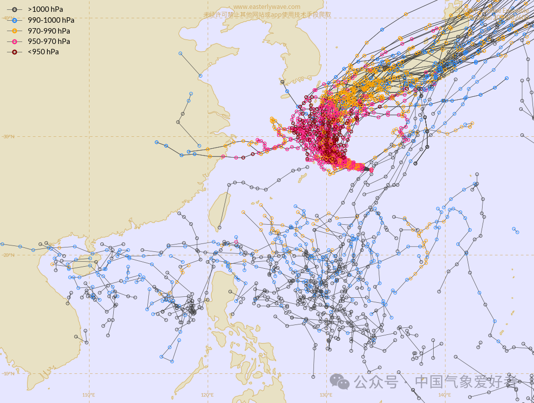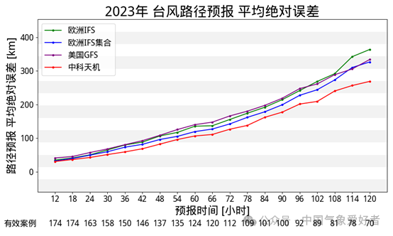 图说:2023年西太平洋所有台风的路径预报中,中科天机整体优于欧美的模式
