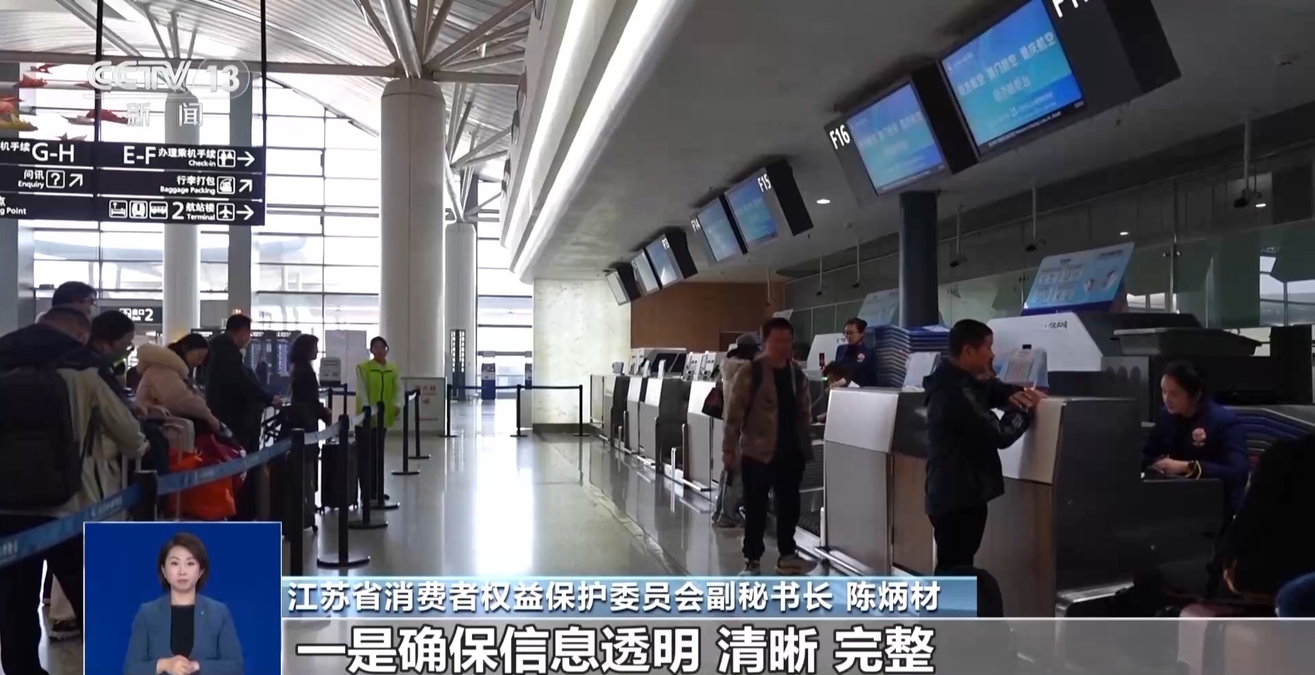 江苏省消费者权益保护委员会副秘书长 陈炳材:航空公司在服务中必须恪守三项基本原则,一是确保信息透明、清晰、完整,及时地向消费者告知座位分布与收费政策。二是保障规则公平,确保购买同等票价旅客享有平等的选座机会,三是尊重选择自主,充分保障消费者的知情权与选择权,杜绝变相强制消费。