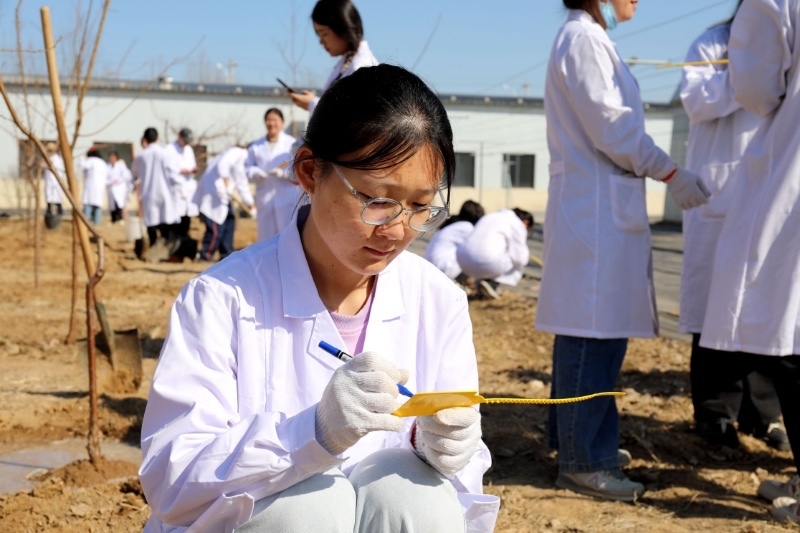 月12日下午,在北京农学院校内实践基地,师生们种下百棵果树,帮助京郊果农增产。