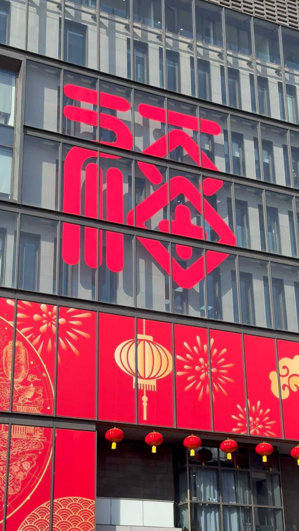 隆福大厦东侧玻璃幕墙上的福字