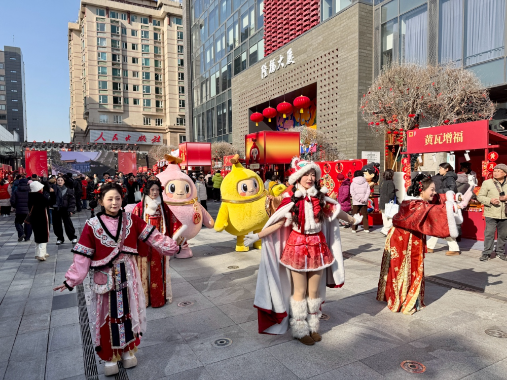 隆福广场上市集互动表演吸引路人