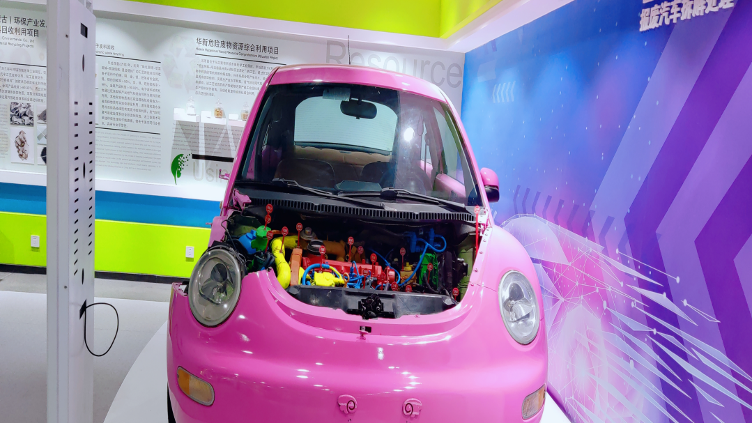 孩子们可以在清新明亮的科普展厅中,游玩红外线感应垃圾分类小游戏,近距离观察粉红色甲壳虫汽车等展品,在轻松愉快的氛围中学习环保知识。