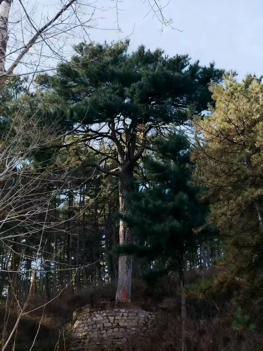 在村东鹿角沟,还有一棵古松,树干笔直,树围达3米、高22米,有资料记载这棵油松有五百多年了,是怀柔区已知最高的古松,在林海间愈发显得苍劲挺拔。