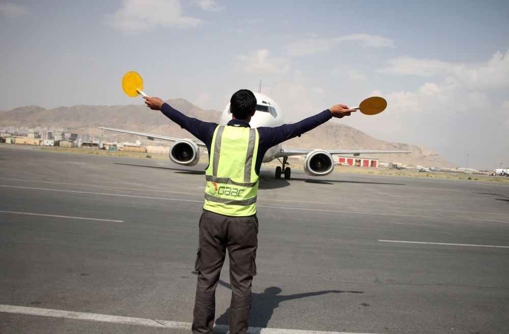 9月20日,一名工作人员在阿富汗喀布尔国际机场工作。