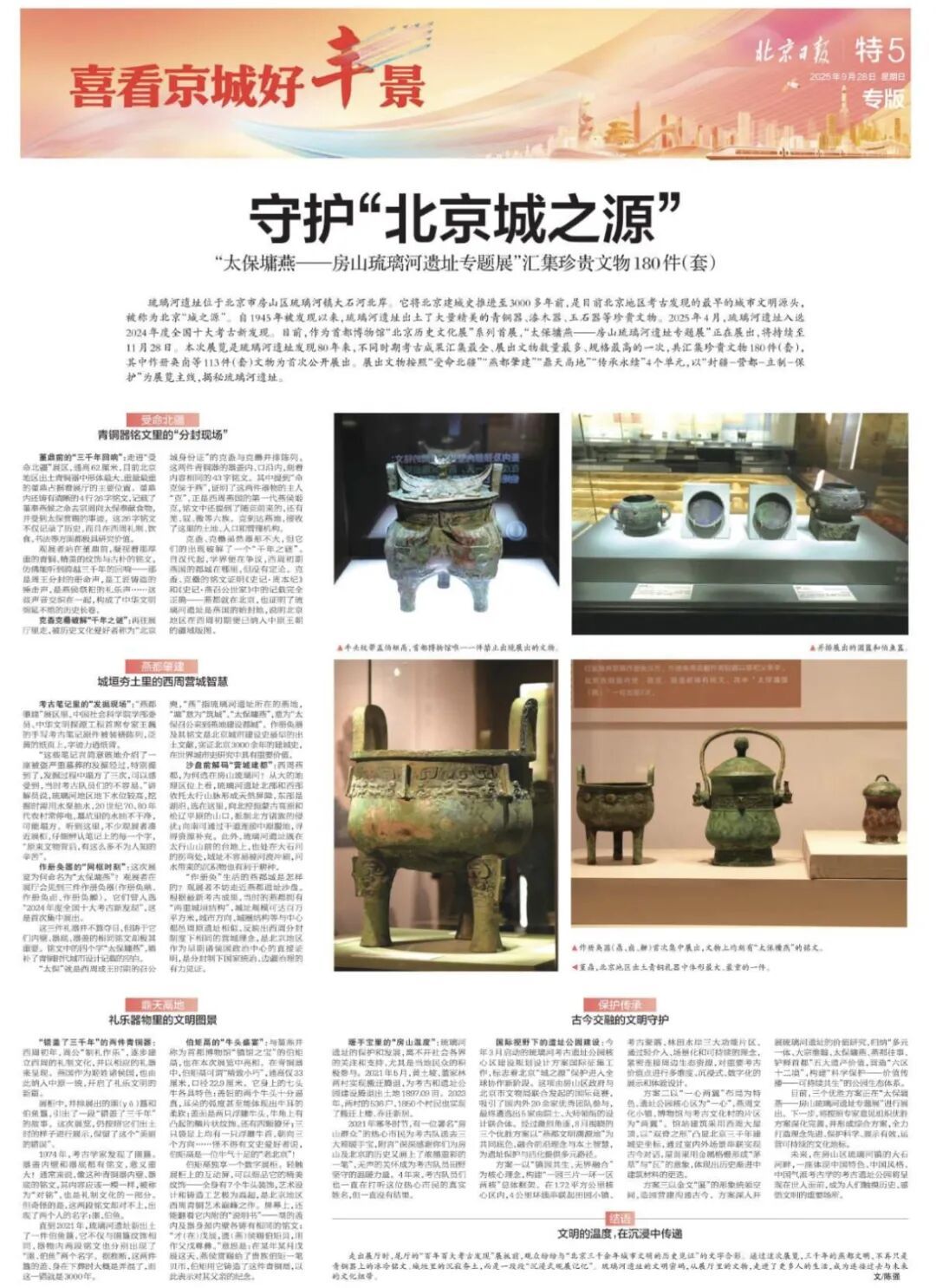 走出展厅时,尾厅的“百年百大考古发现”展板前,观众纷纷与“北京三千余年城市文明的历史见证”的文字合影。通过这次展览,三千年的燕都文明,不再只是青铜器上的冰冷铭文、城垣里的沉寂夯土,而是一段段“沉浸式观展记忆”。琉璃河遗址的文明密码,从展厅里的文物,走进了更多人的生活,成为连接过去与未来的文化纽带。