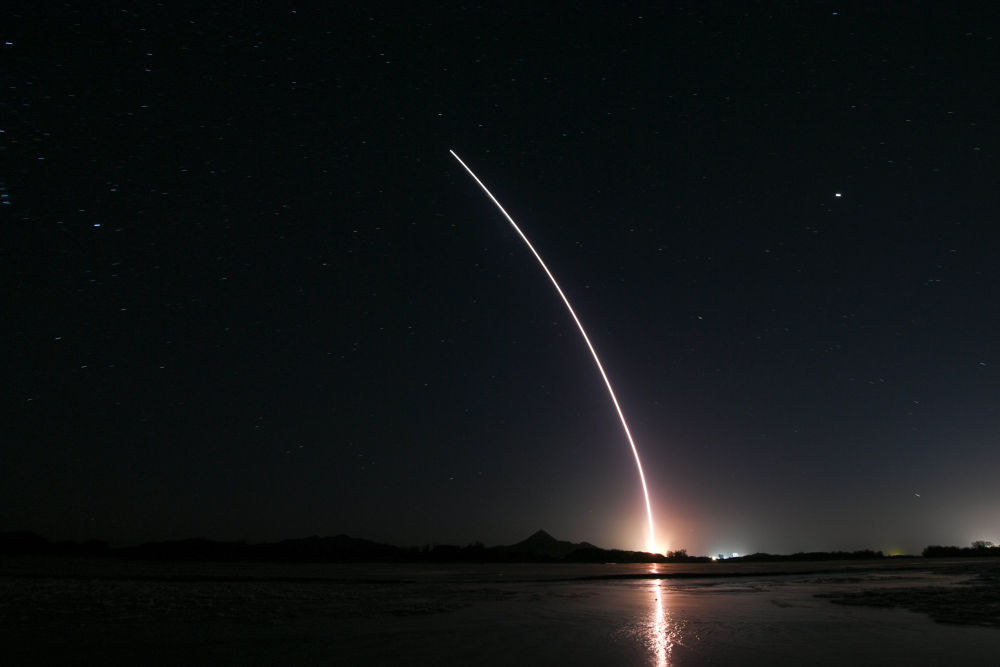 放眼天宇,升空后的火箭,瞬间成为夜空中最亮的“星”。回望眼前,冰封的黑河河面上,火箭尾焰的倒影快速划过,形成冰与火“交融”的奇特场景。河畔几名摄影爱好者,冒着严寒,快速用相机捕捉这难得的画面。