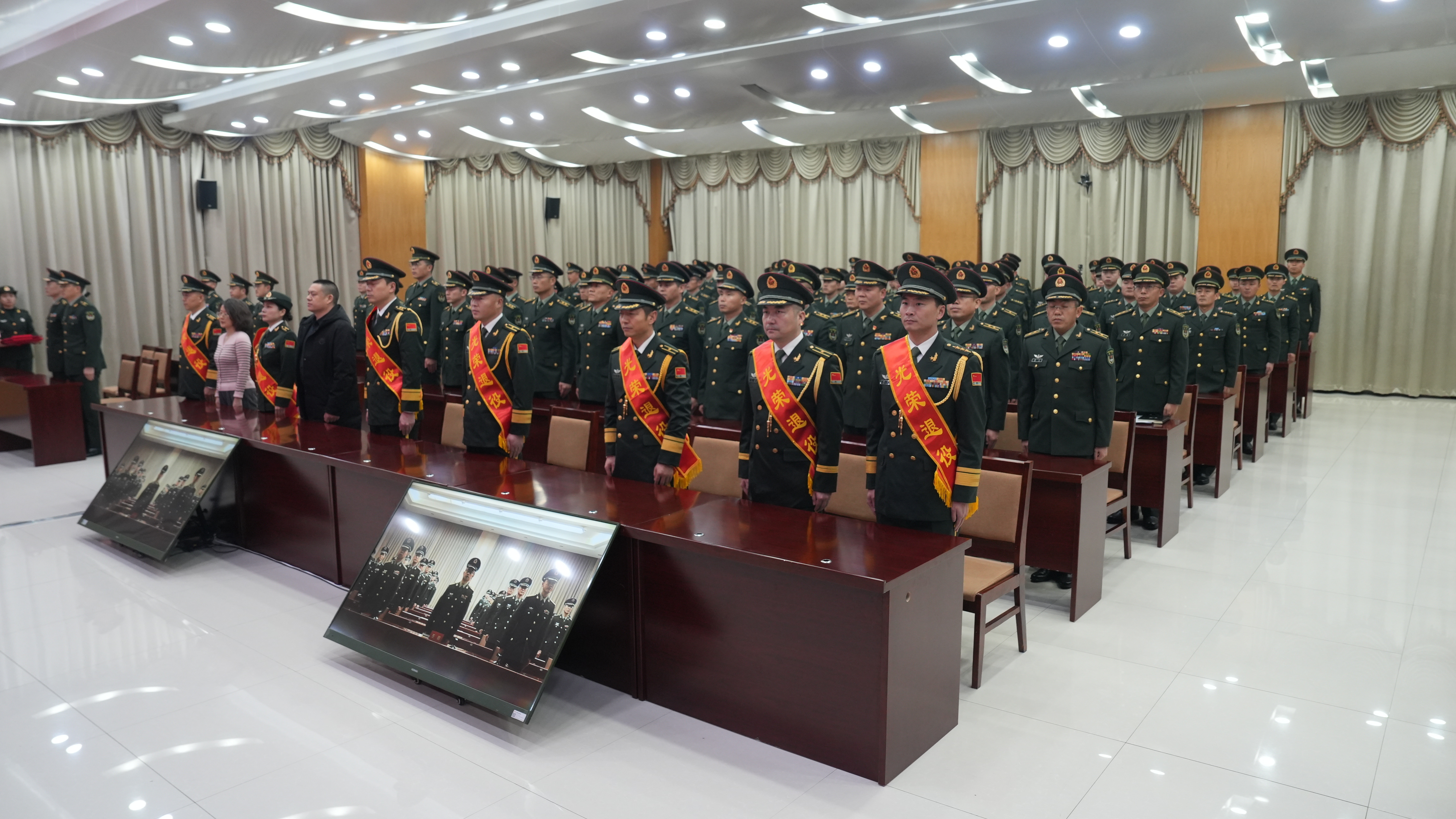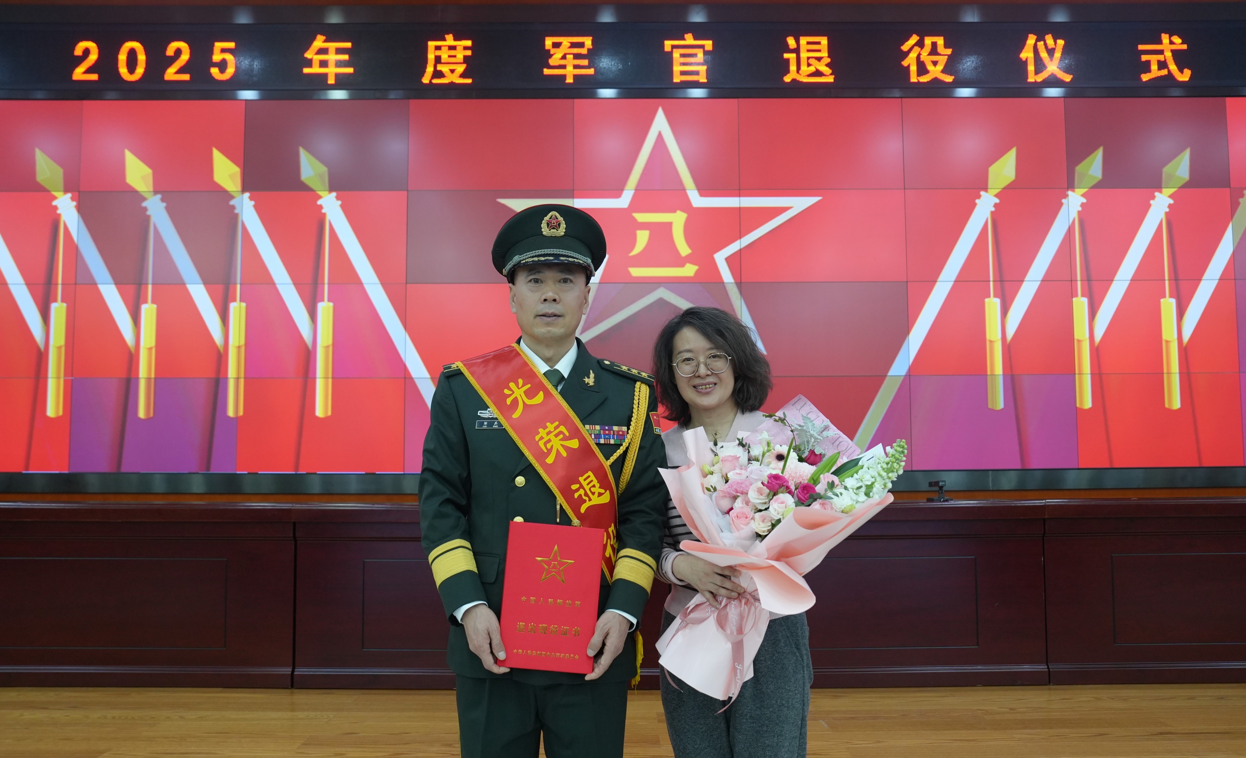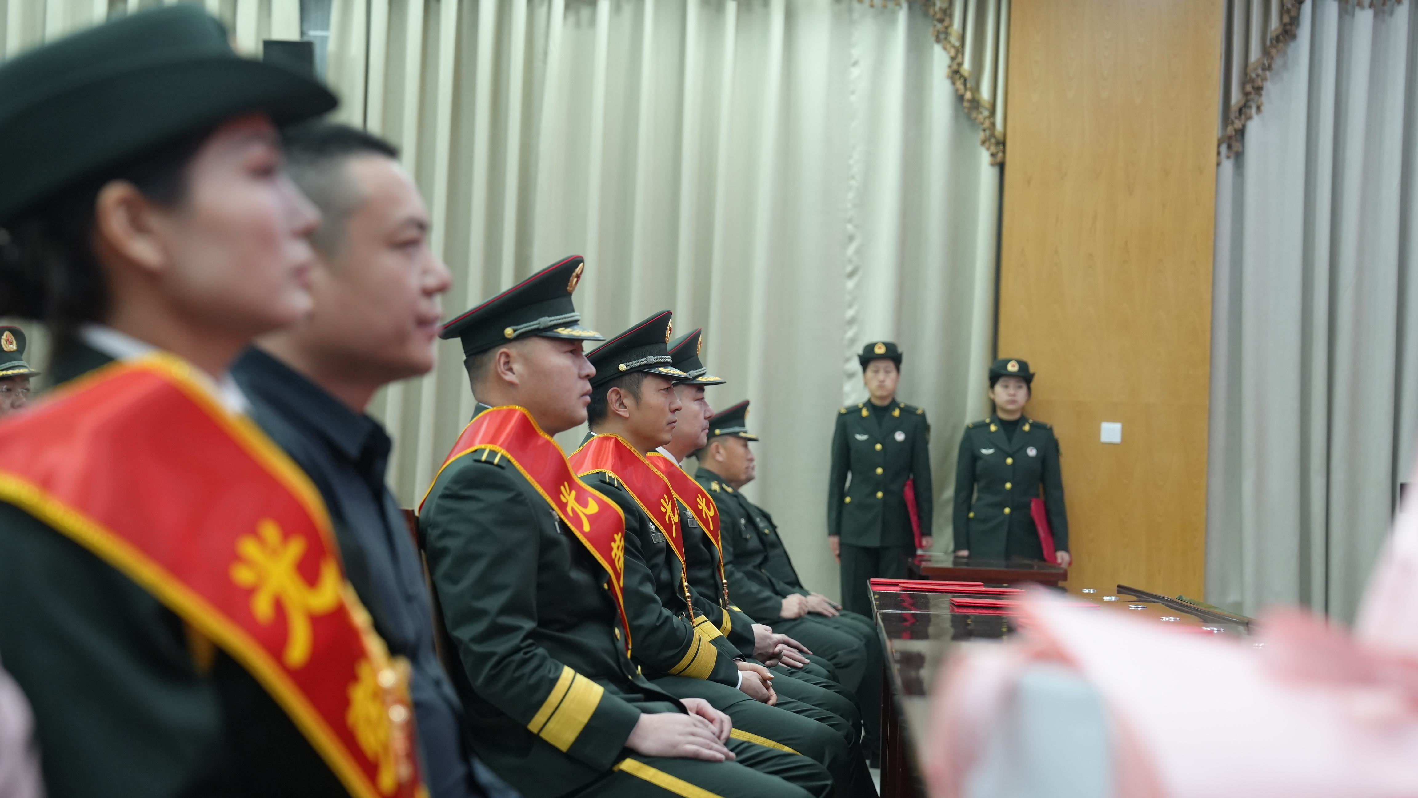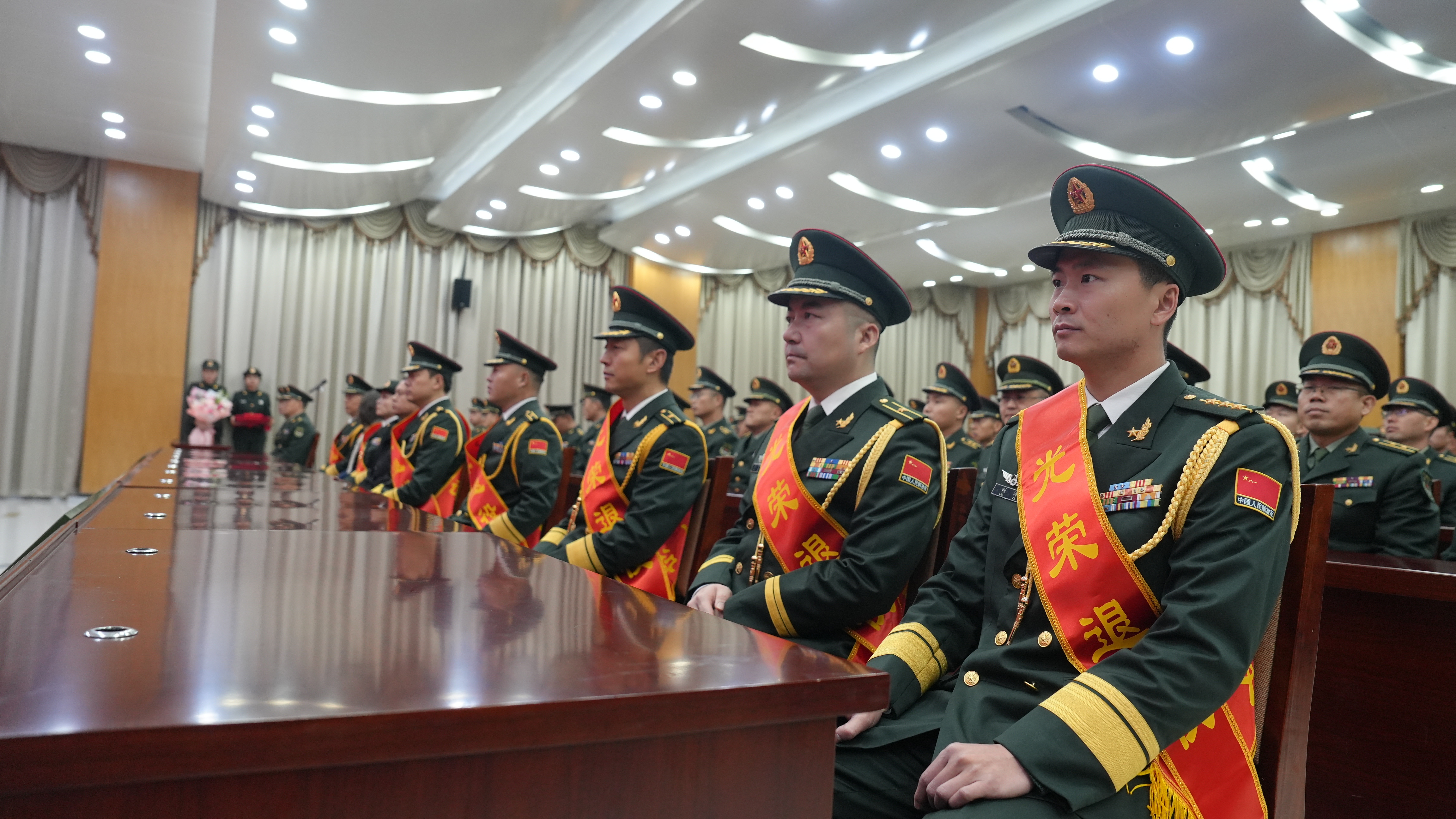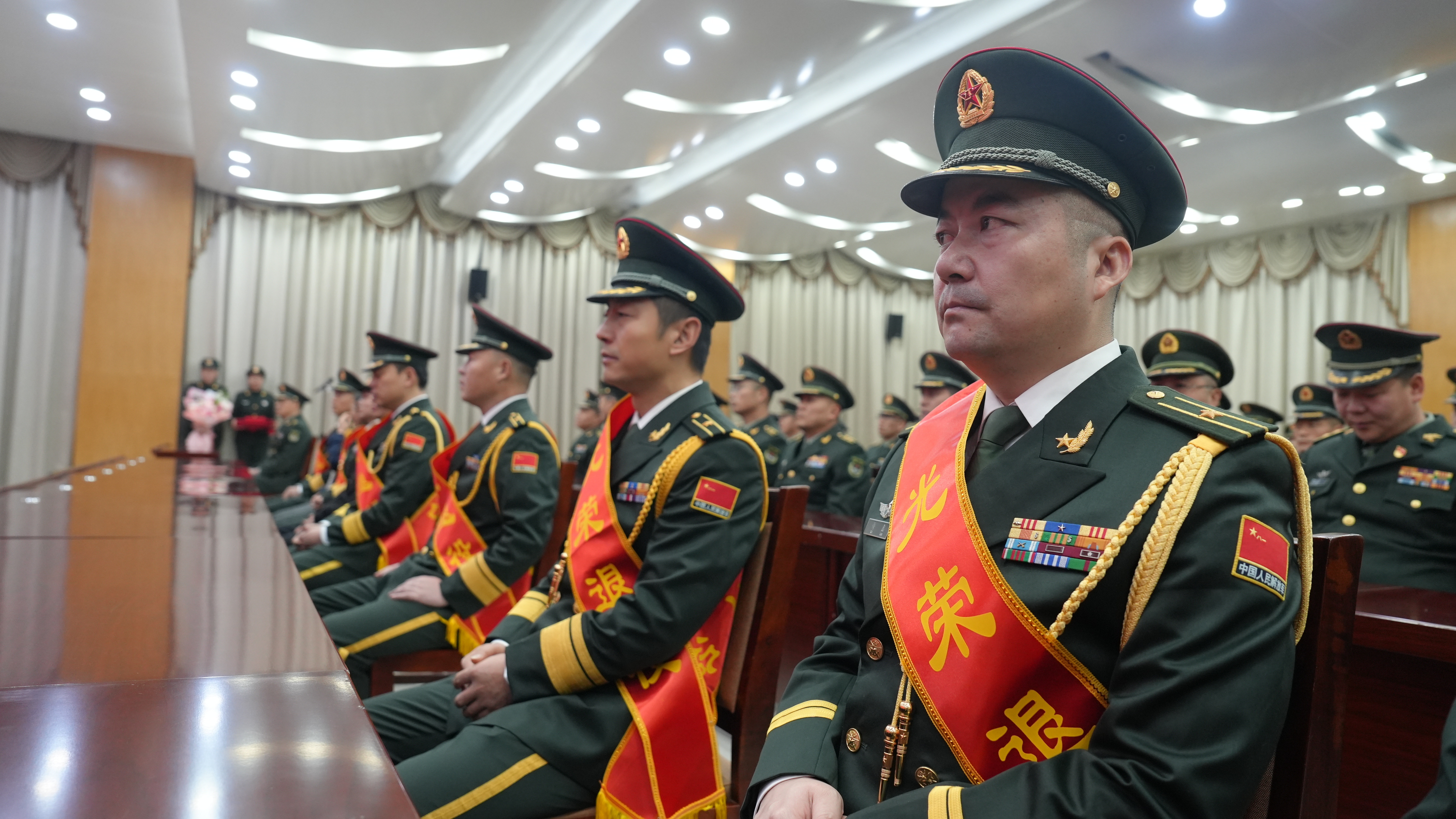 军功章的背后,离不开家属们的默默坚守与无私奉献,这份荣光,理应由他们共同分享。此次退役仪式特意邀请了退役军官的家属到场共享荣光,看着亲人身披绶带,家属们脸上满是骄傲与自豪。
