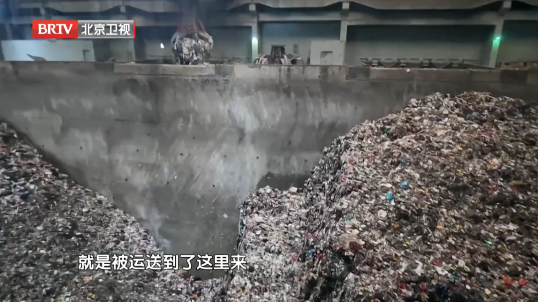 当一辆辆垃圾运输车驶入北京朝阳环境集团,它们的第一站是一个巨大的垃圾仓。走进垃圾仓,记者被眼前的场景“震撼”了——一个宽30米、长80米、近六个篮球场大小的仓内,堆积着近三万吨生活垃圾,仿佛一座座连绵起伏的垃圾山。