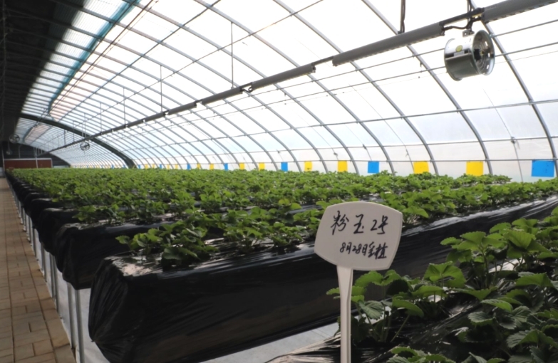 为了进一步提升草莓产业的发展水平,位于辛庄村南的农业产业园应运而生。产业园总占地面积约189亩,建有60栋柔性日光温室和近7000平方米的地上辅助设施。