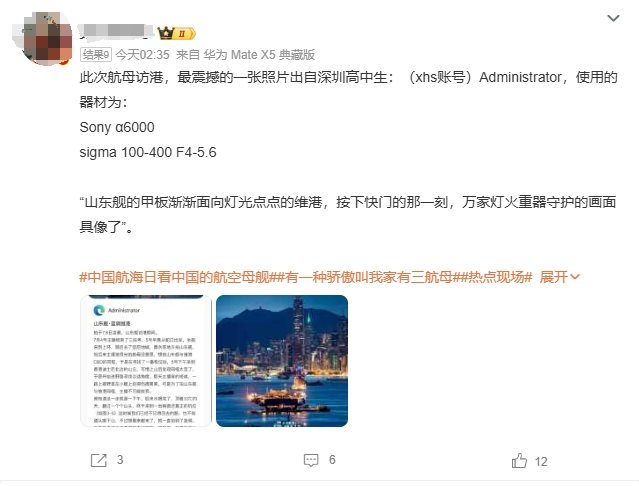 “山东舰守护万家灯火”照片刷屏!竟然是一名高中生拍的