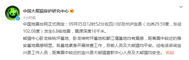 据@中国大熊猫保护研究中心 消息,各基地目前人员及大熊猫均平安。