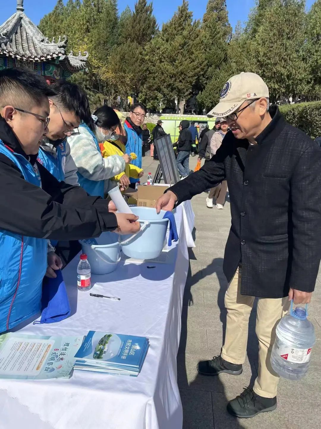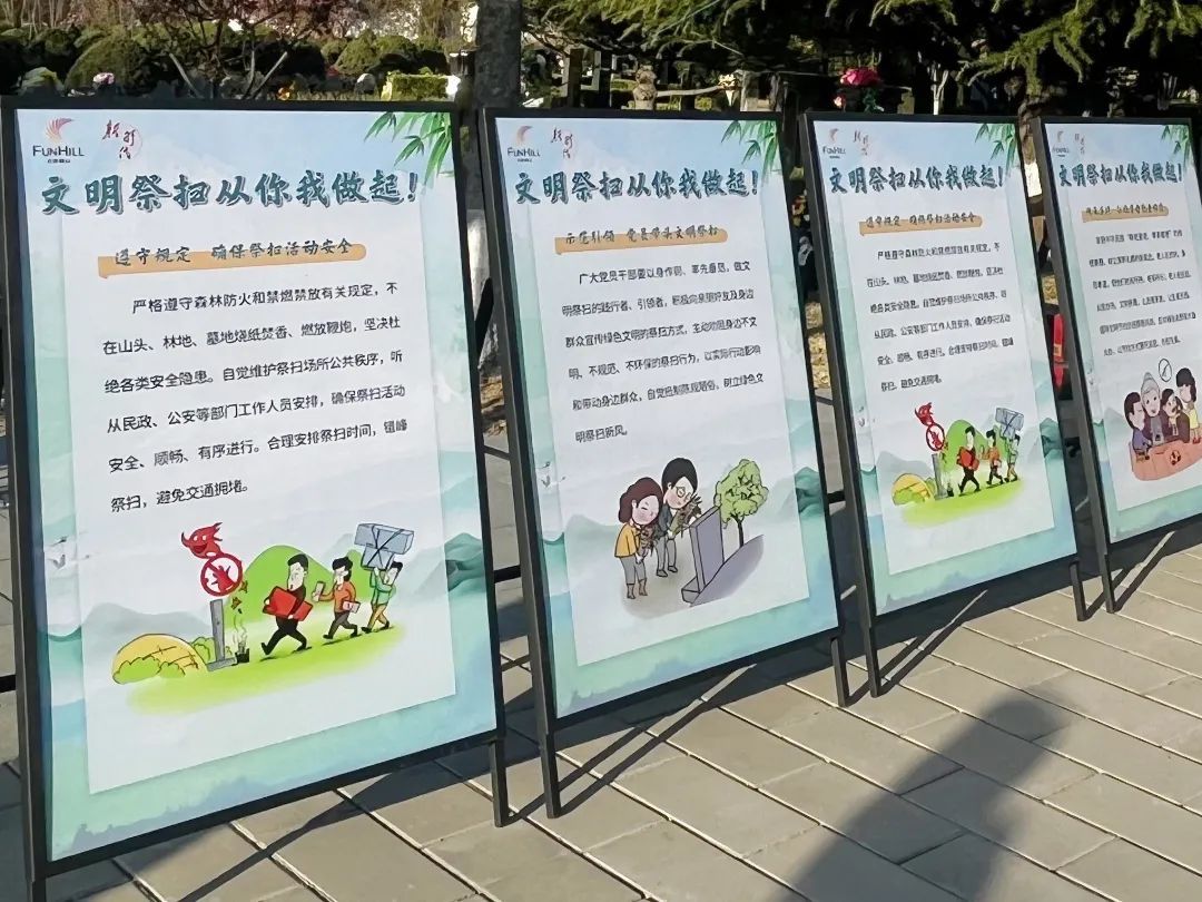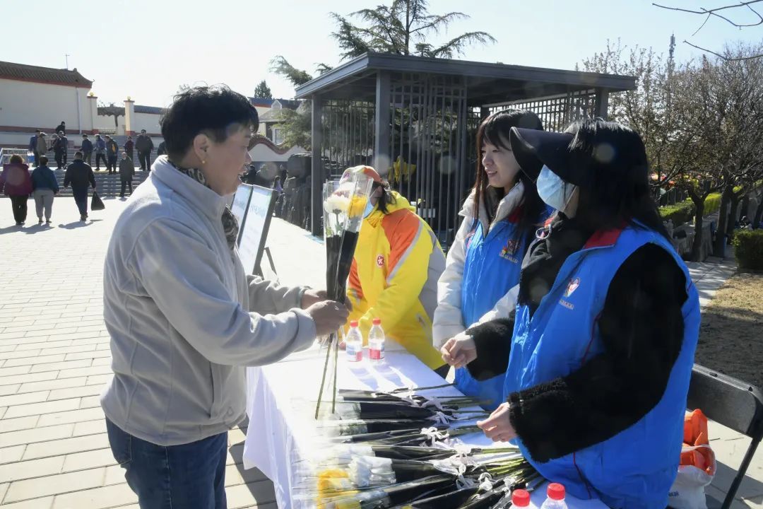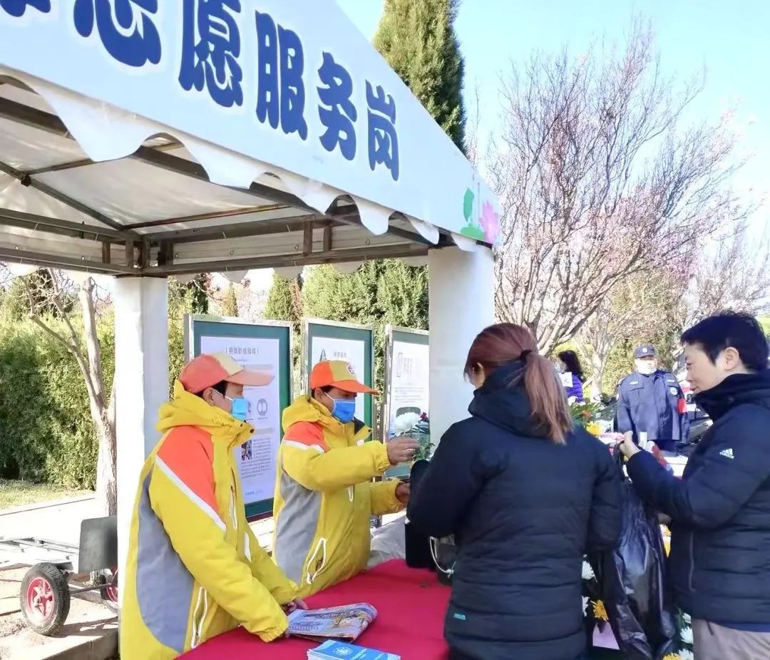 活动现场设置了主宣传展台。志愿者热情地向每一位前来祭扫的市民发放“理性追思 文明祭扫”倡议书,耐心地为大家讲解绿色祭扫、文明祭扫的意义与方式,引导大家自觉摒弃焚香烧纸、燃放鞭炮等不文明习俗。为了扩大宣传,还在现场发放《房山区市民文明手册》和环保购物袋,让更多的市民参与进来,做践行文明祭扫理念、弘扬时代新风的传播者。