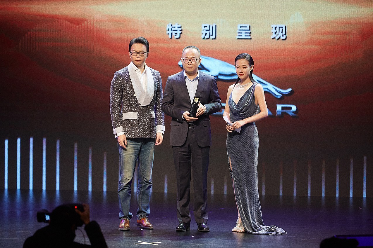 谭卓与著名作家江南一同颁发“年度编剧”大奖。