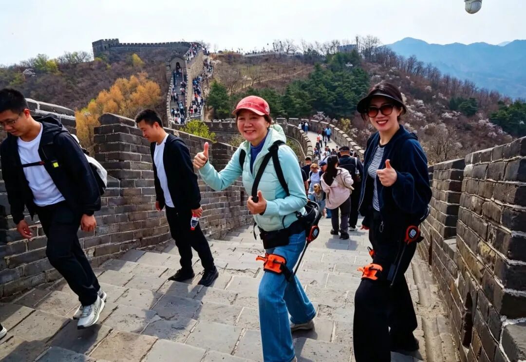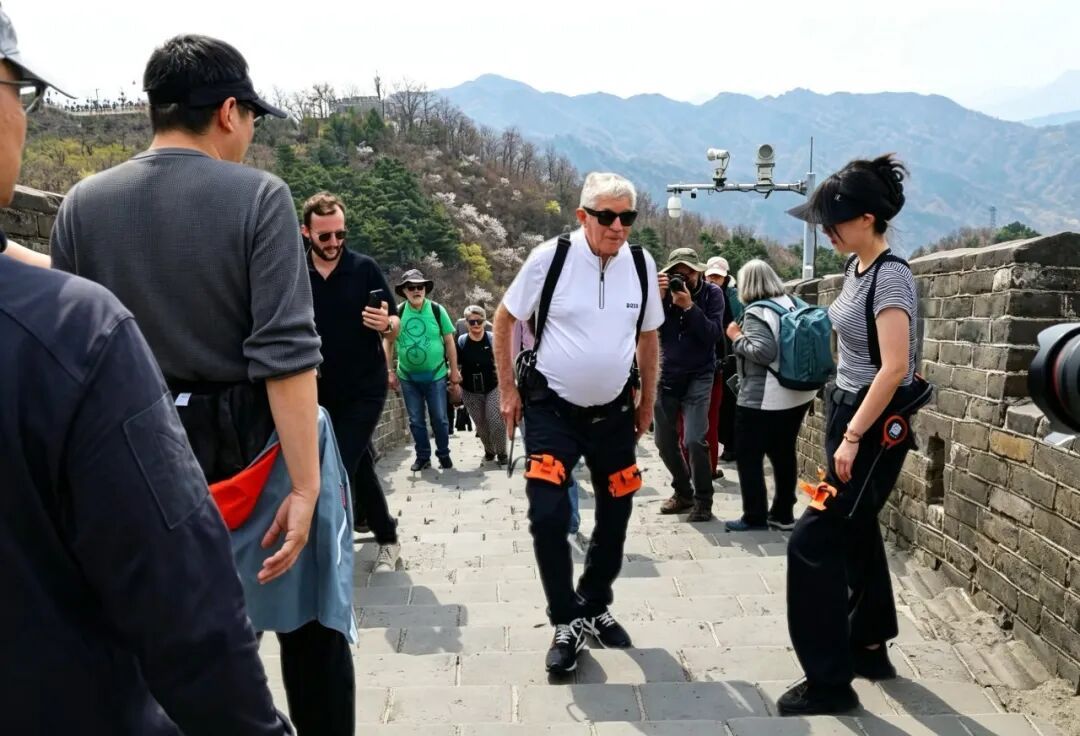 当雄奇的长城垛口映照着春日暖阳,当蜿蜒的石阶承载着千年的历史底蕴,一群特殊的“攀登者”正用全新的方式丈量这份壮美 —— 身着智能外骨骼的外籍游客们,步履轻松地登上慕田峪长城,在惊叹与欢呼中,开启了一场科技与古韵交融的奇妙之旅。