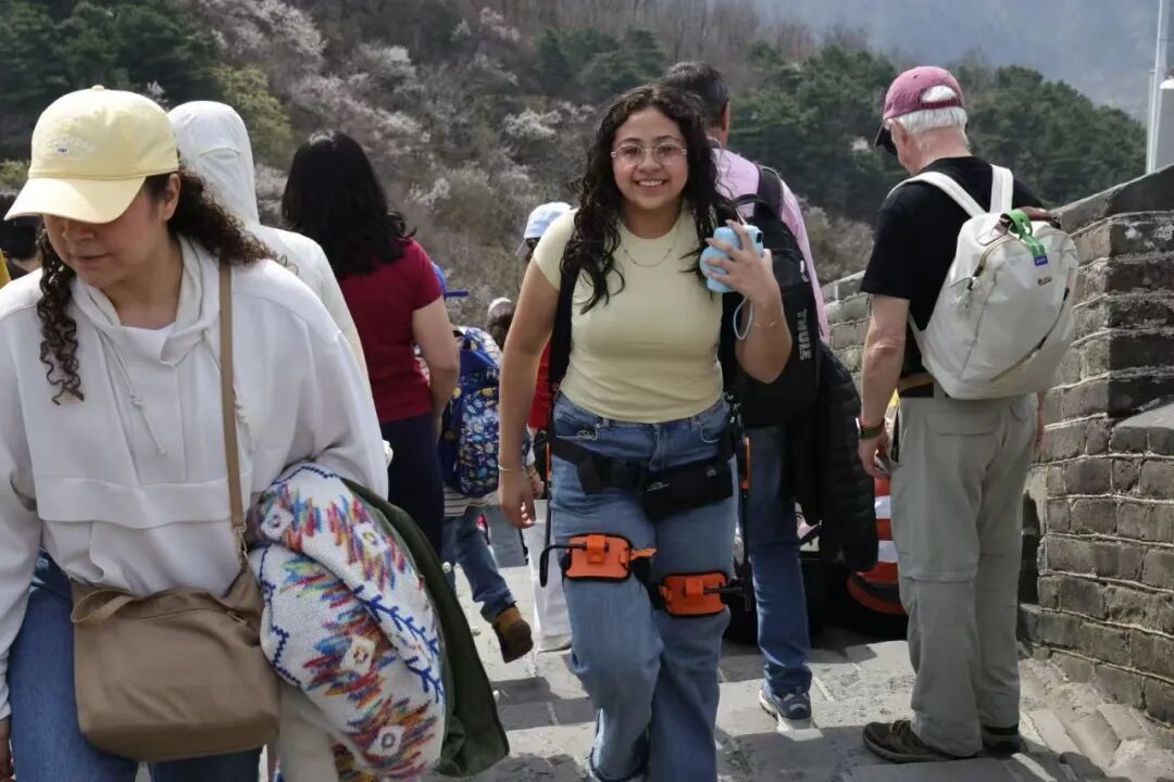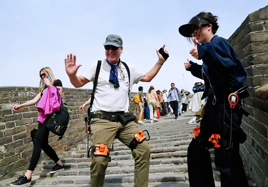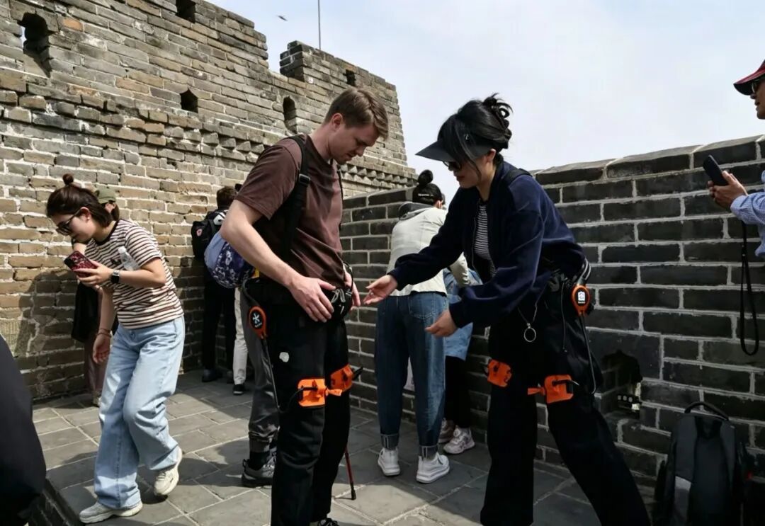 “太神奇了!我能明显感觉到它在支撑我的腿部,爬台阶比想象中轻松太多!”游客体验后难掩兴奋,他一边竖起大拇指,一边向身边的同伴分享着感受。在陡峭的长城石阶上,以往需要借助扶手、放慢脚步的路段,如今在外骨骼的辅助下,外籍游客们步伐稳健、从容前行,每一步都伴随着轻松的笑语。