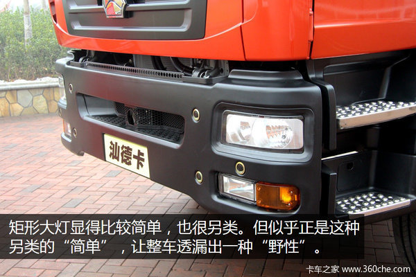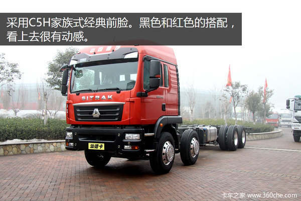 这款汕德卡C5H 8X4载货车,采用C5H家族式经典前脸。黑色和红色的搭配,看上去很有动感。