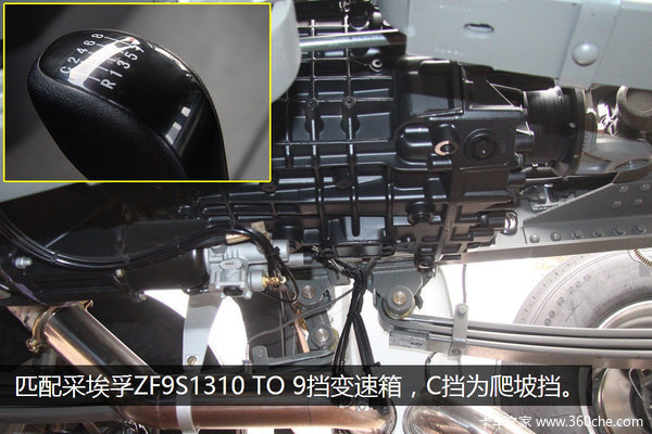 采埃孚9挡变速箱:匹配采埃孚ZF9S1310 TO 9挡变速箱,C挡为爬坡挡。