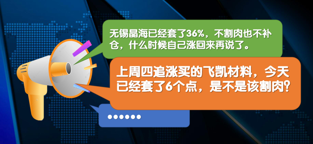 观众“飞得更高“:上周四追涨买的飞凯材料,今天已经套了6个点,我是不是该割肉避免更大的损失呀。