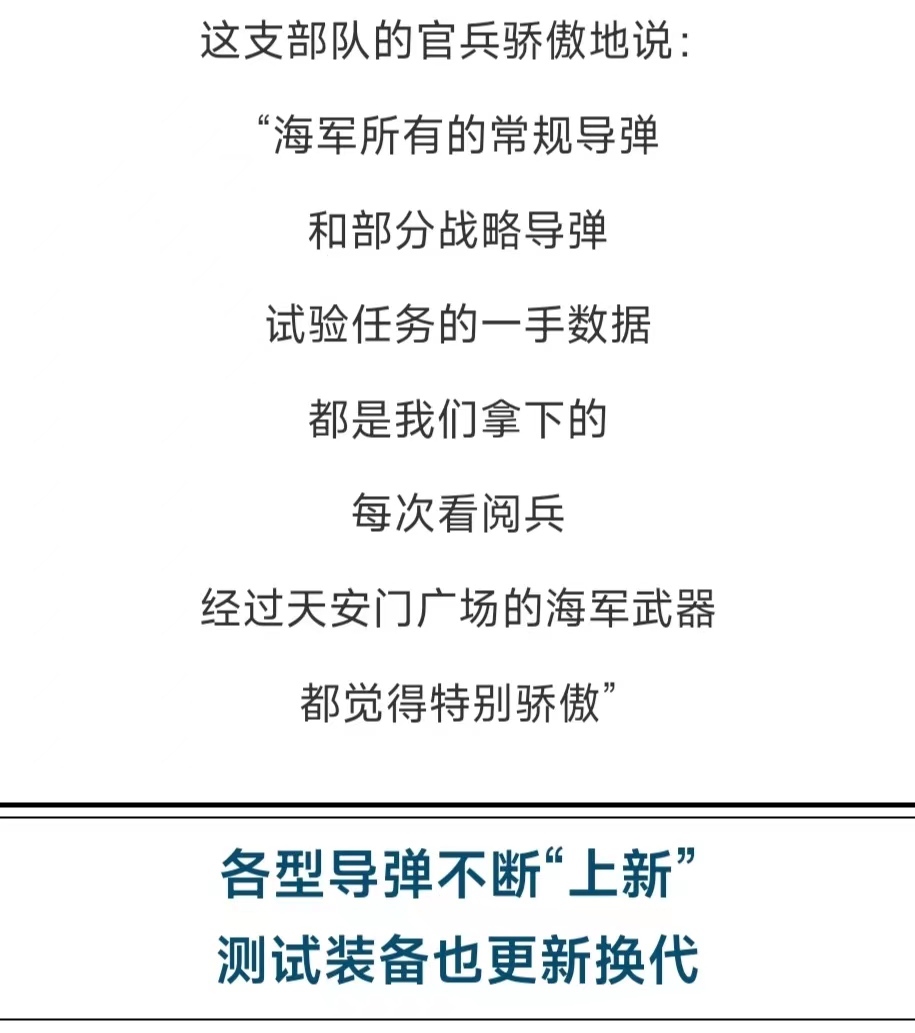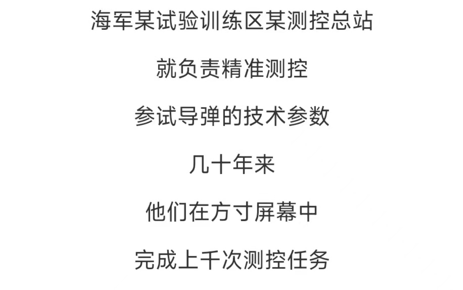 近年来,一批批新型导弹,在海上靶场开展试验任务。面对新使命新要求,这支部队实现了测控装备。由单一功能到系统集成,测控对象从单一目标到多个批次,测控范围由几十公里到上千公里,测控条件从典型气象到全天候的,历史性跨越。