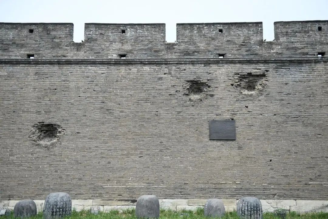 宛平城城墙上的弹坑遗迹。新华社记者张晨霖 摄
