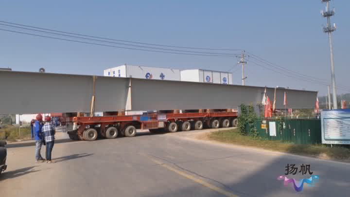 中铁大桥局龙潭项目部副经理李浔告诉记者,第5跨的右幅第二片梁大概80吨重,需要用两台200吨的运梁抬车进行钢梁运输。