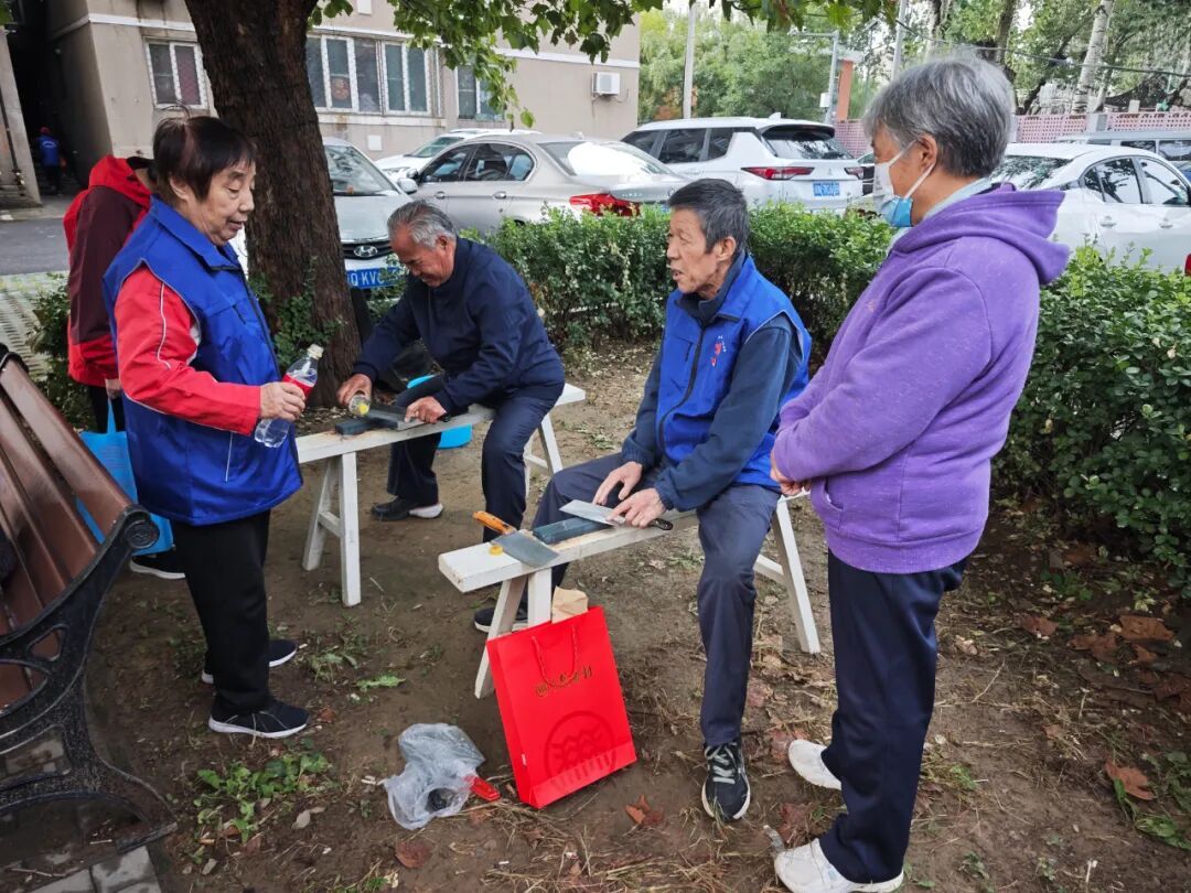 活动现场秩序井然:医疗卫生组成员已开始为居民免费测量血压、血糖,耐心解答有关慢性病管理和季节性保健的疑问,并针对高血压、糖尿病等常见病症提供个性化建议;日常维修组前排起了队,志愿者手持刀具,在磨刀石上反复打磨,“嚓嚓”声此起彼伏,不一会儿,一把把刀具便焕然一新、锋利如初。