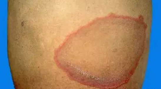 3.出现皮疹,特别是逐渐扩大的圆环状皮疹,如图,当然出现其他类型的皮疹也应该就诊。