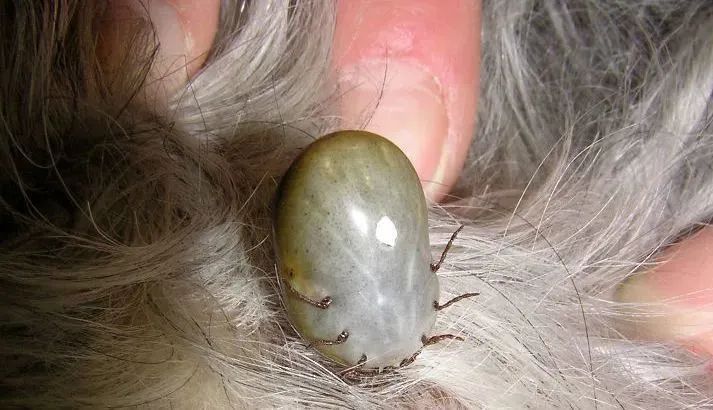 (这是唯一正确的方式,其他网络上介绍的方法均不建议使用,用酒精或其他刺激性药品,用点燃的香烟或火柴慢慢靠近蜱迫使它脱离,这些方法均不可取,会使蜱分泌更多的唾液,增加感染的几率,当然蛮力拍死更不恰当。)