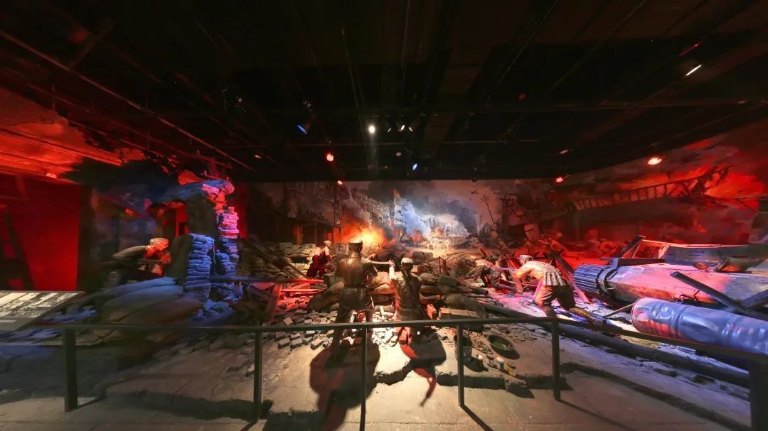 全景画展馆是圆形穹顶建筑,内径42米,周长128米,高18米,地面塑型区1260平方米,配置的战车、武器等模拟塑型作品近百件,巨大的立体画面与地面塑型复原景区衔接得当,以声、光、电立体形式展现出济南战役攻坚战斗的激烈场景,以身临其境之感为观众接受爱国主义教育提供了鲜活的历史教材。
