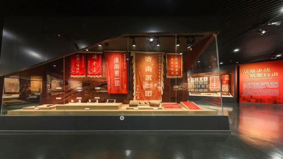 济南战役纪念馆始建于1998年,2003年正式对外开放。纪念馆建筑面积6800平方米,分为陈列展厅和全景画展馆两部分,其中陈列展厅共有两层,展陈面积2699平方米,展线485米,展陈文物400余件。