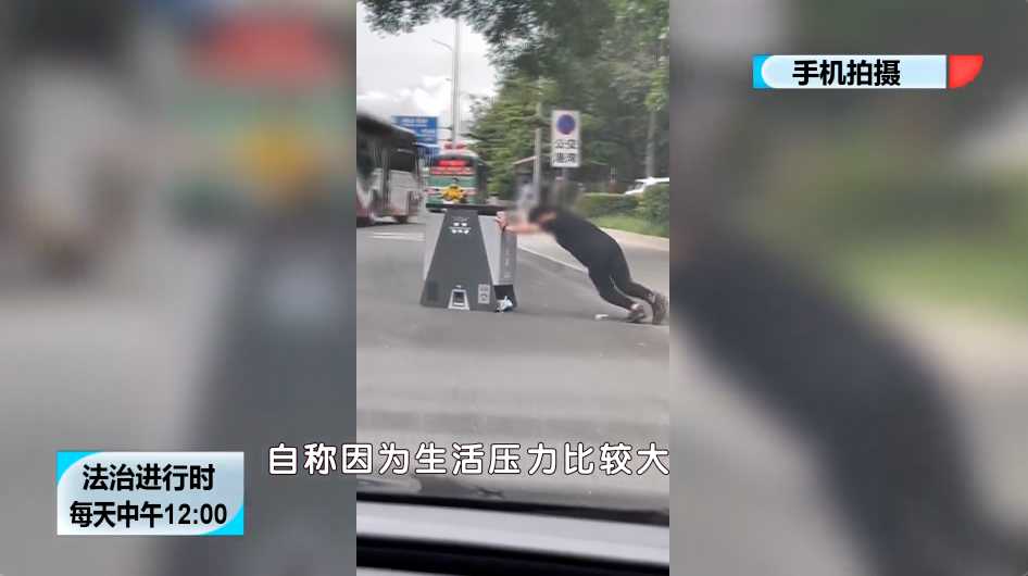 事发位置位于京开辅路,过往车辆非常多,男子将垃圾桶破坏,推向马路中央,十分危险,尽管有路人上前劝说,但是男子并不在乎。