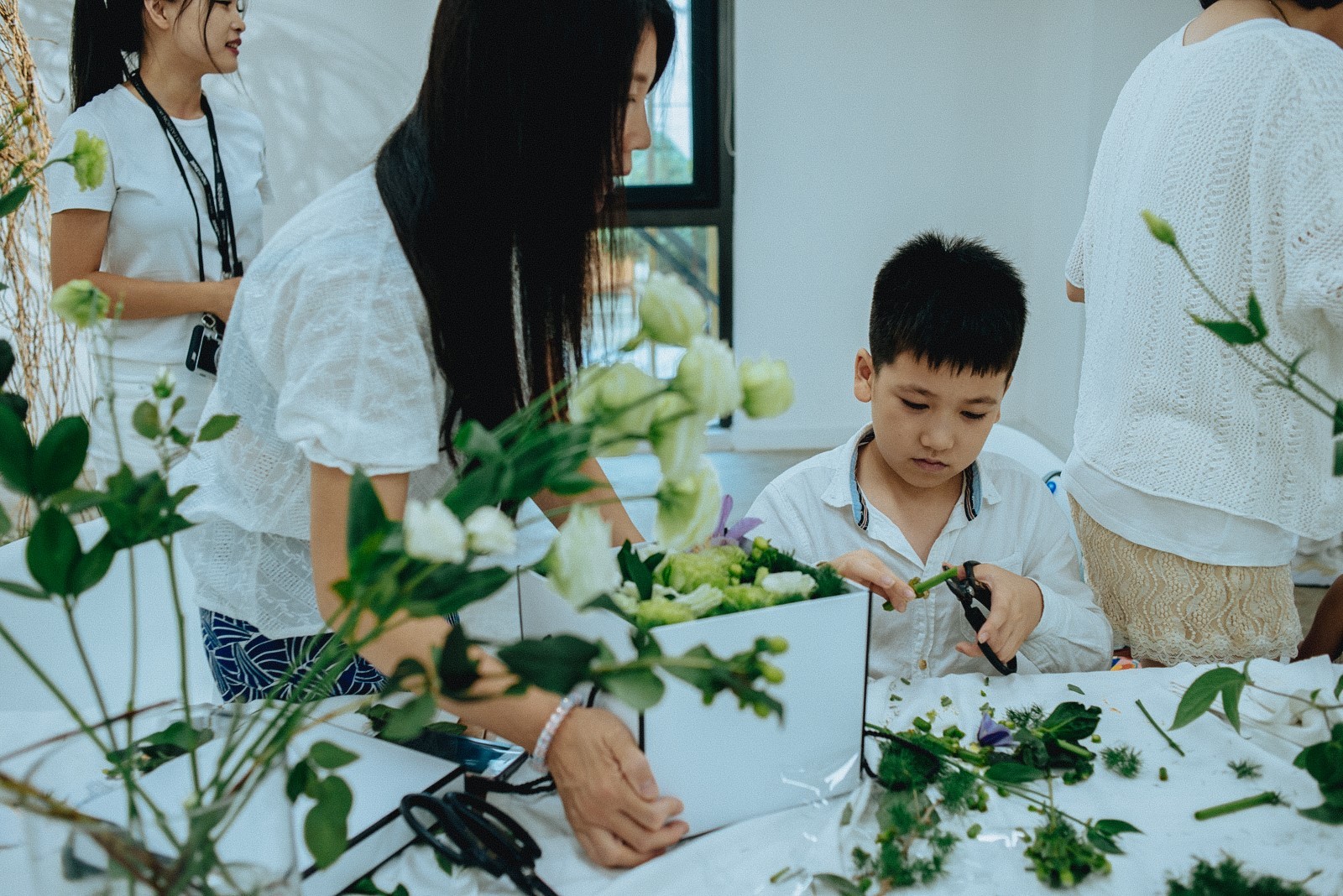 此次白集,还有专门的插花课程让孩子们能够现场学习和体验,国内最权威和专业的插花老师非常耐心地指导孩子们制作自己的作品,并让父母也能够充分参与其中,享受亲子互动的乐趣。