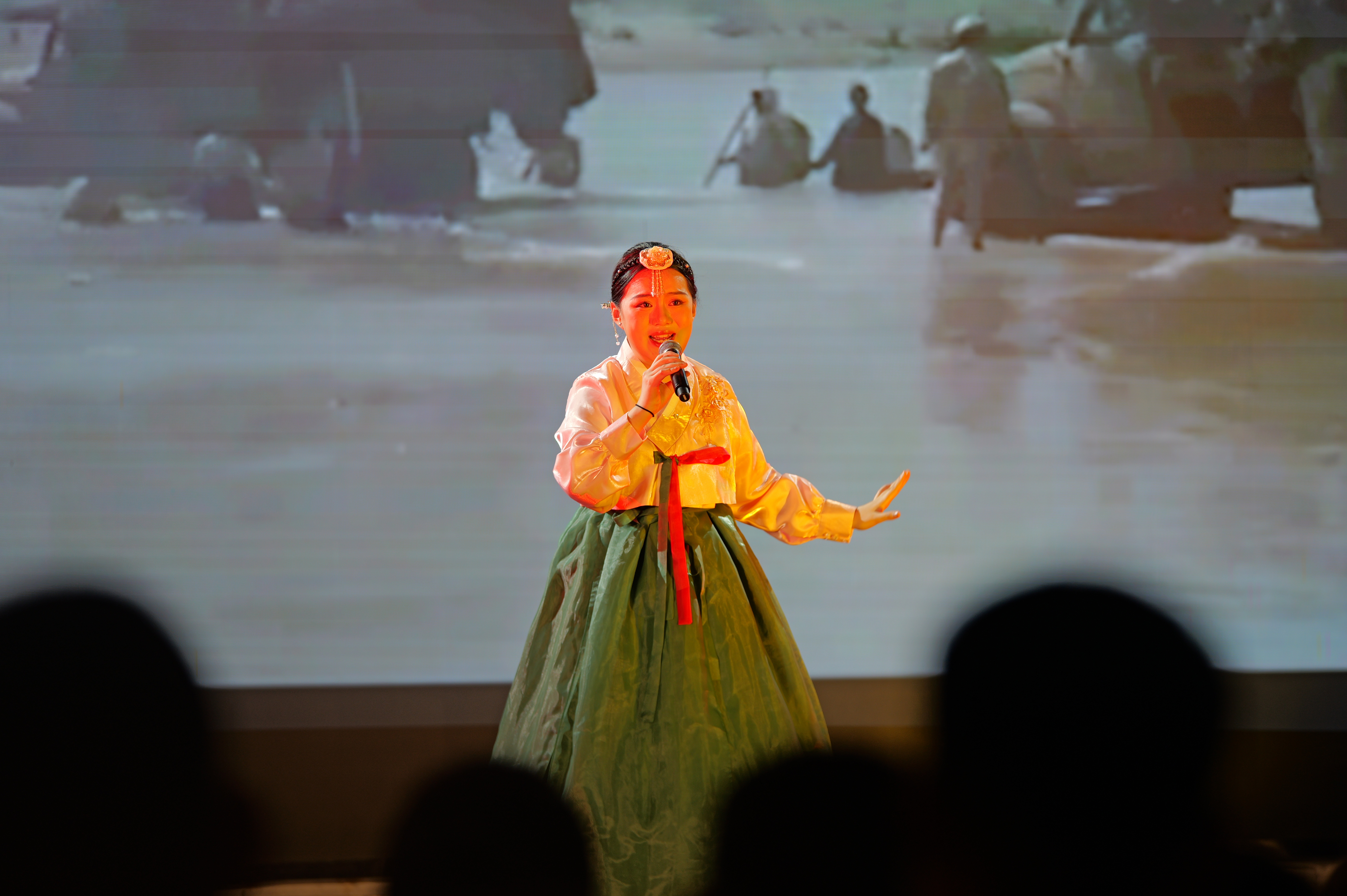“战场风云突变,志愿军壮志冲天,英魂铸不朽丰碑,热血映河山。”原创说唱《铁军记事》由机动某支队与中国传媒大学师生共同打造,以铿锵节奏、振奋歌词,颂扬支队先辈阻击铁原的战斗事迹。歌唱《我的祖国》《美丽的临津江》,婉转悠扬的旋律中,流淌着对和平的渴望与对英雄的缅怀。