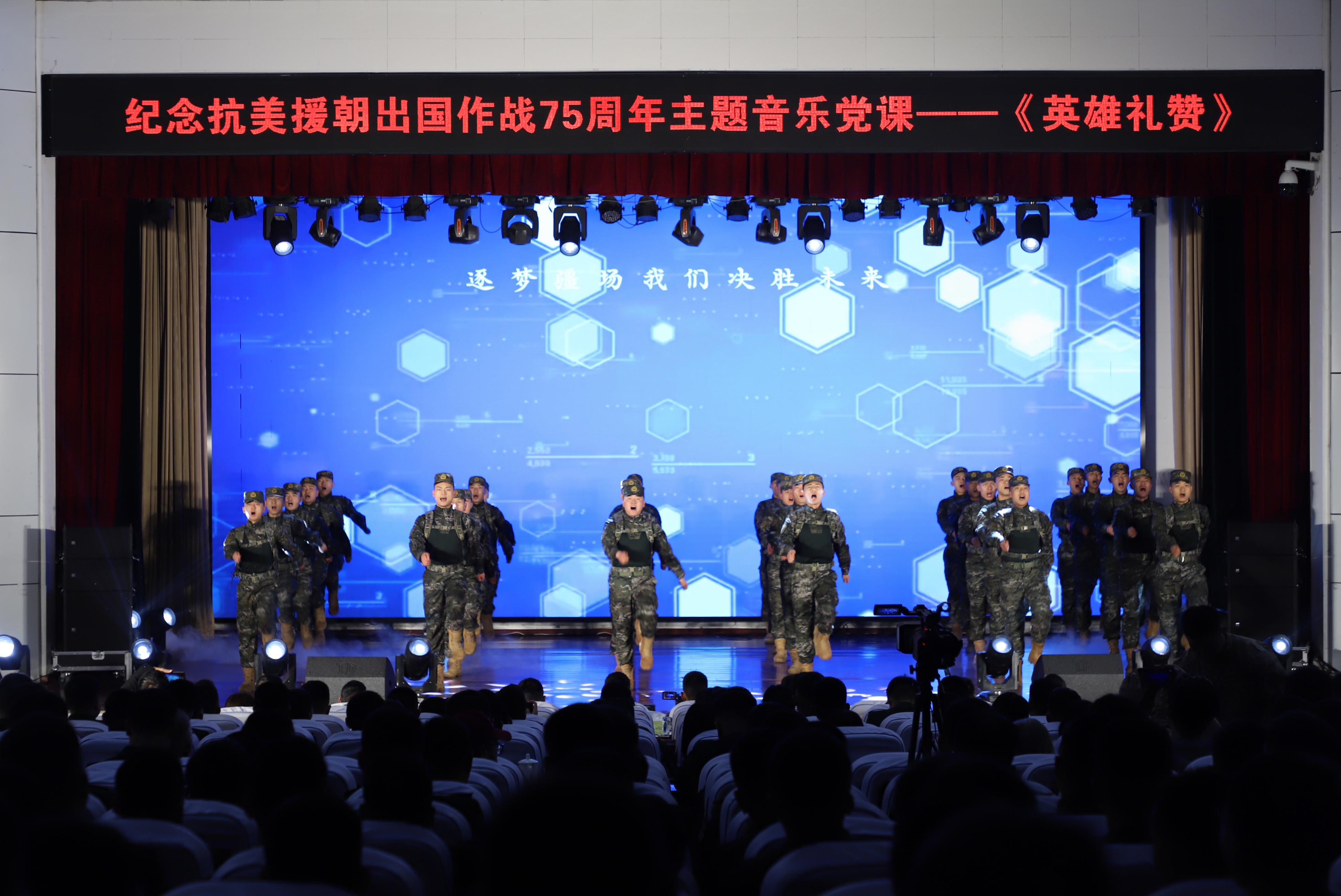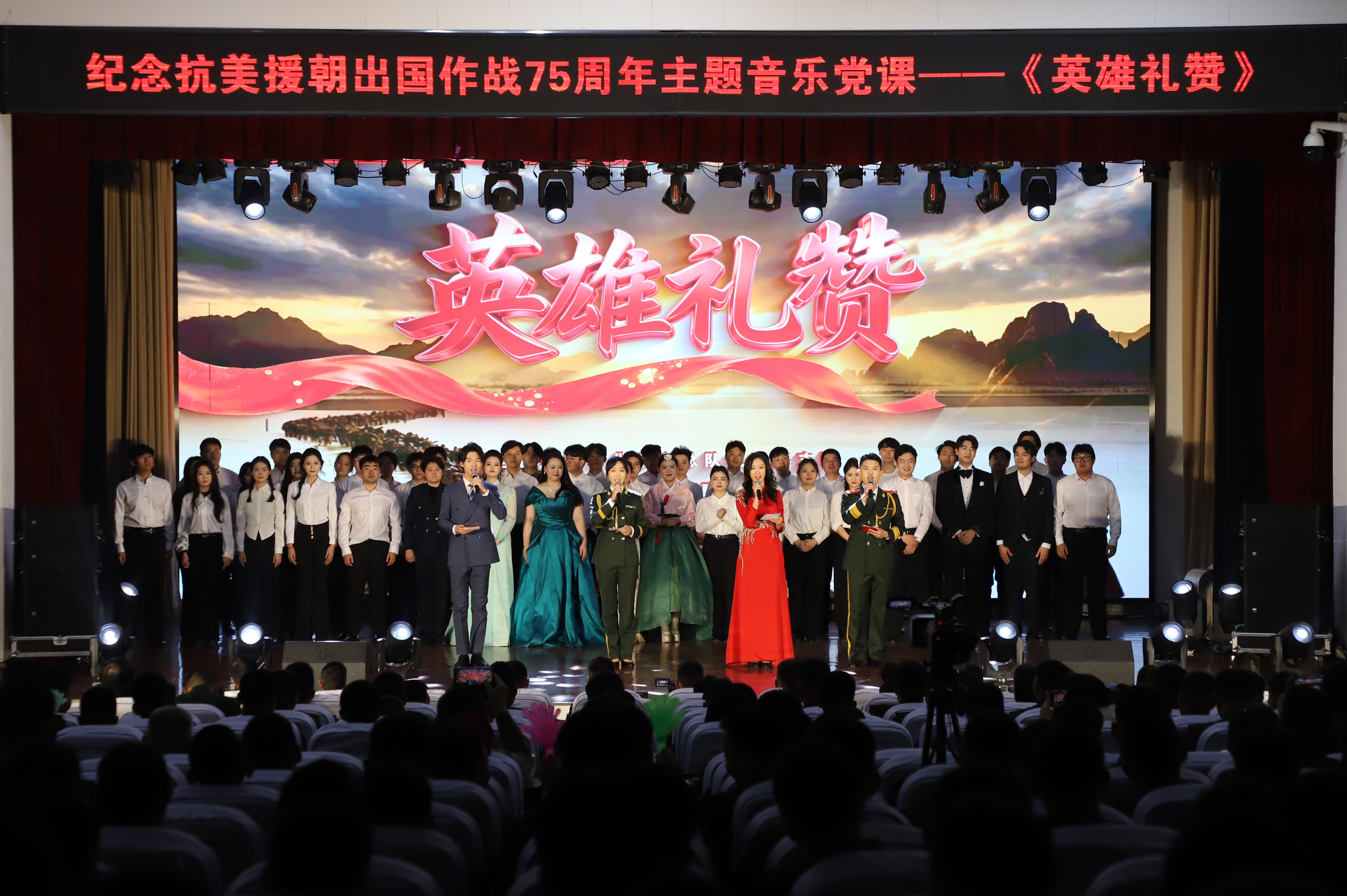 英雄从未远去,精神永远闪光。七十五载风雨兼程,七十五载山河无恙。这场主题音乐党课,不仅是一场艺术演出,更是一堂生动的党史军史学习教育课,用音乐为媒,以情感为桥,让历史“活”起来,让英雄“立”起来,让信仰“燃”起来。