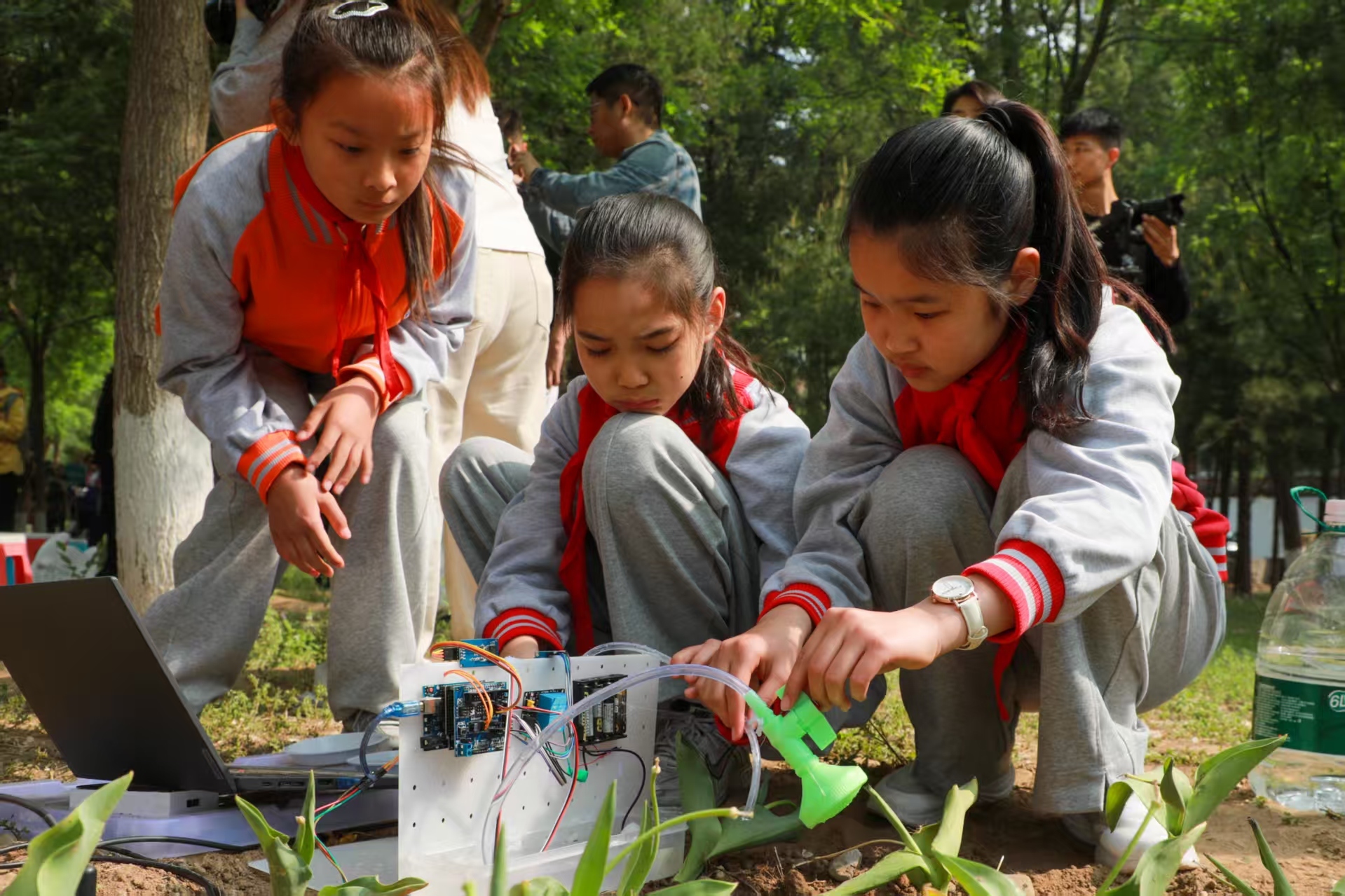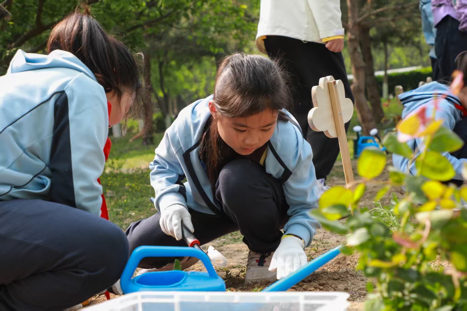体育课也在自然中焕发新生。在丰台外国语学校小学部的户外课堂上,体育老师引导学生们在绿地上进行攀爬、跑跳等训练,实现“回归自然”的身体锻炼。而在北京市第十二中学附属实验小学,学生们在公园中操作便携式气象站,测量温度、湿度、风速,并结合土壤勘测数据,计划种植郁金香,真正实现科学知识的学以致用。