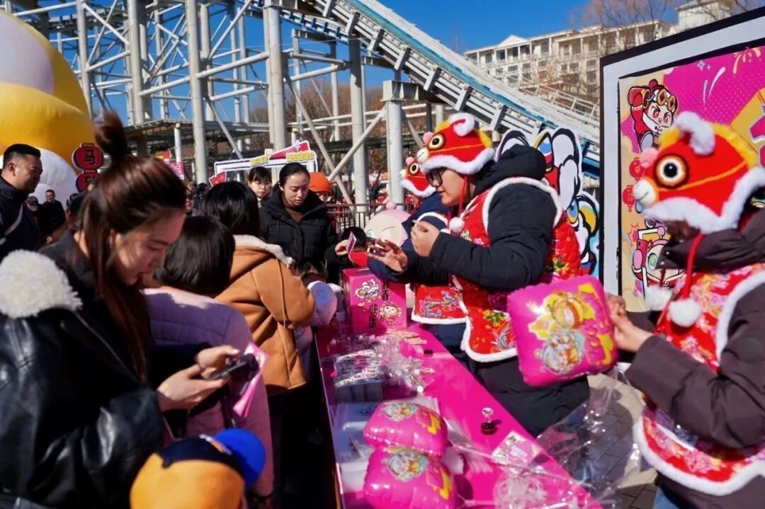 除双IP核心体验外,新春文化板块同样精彩纷呈。走进新春市集,40余个展位错落排布,既有文创好物,也有非遗手作,更有特色美食,逛吃游玩一站式配齐。