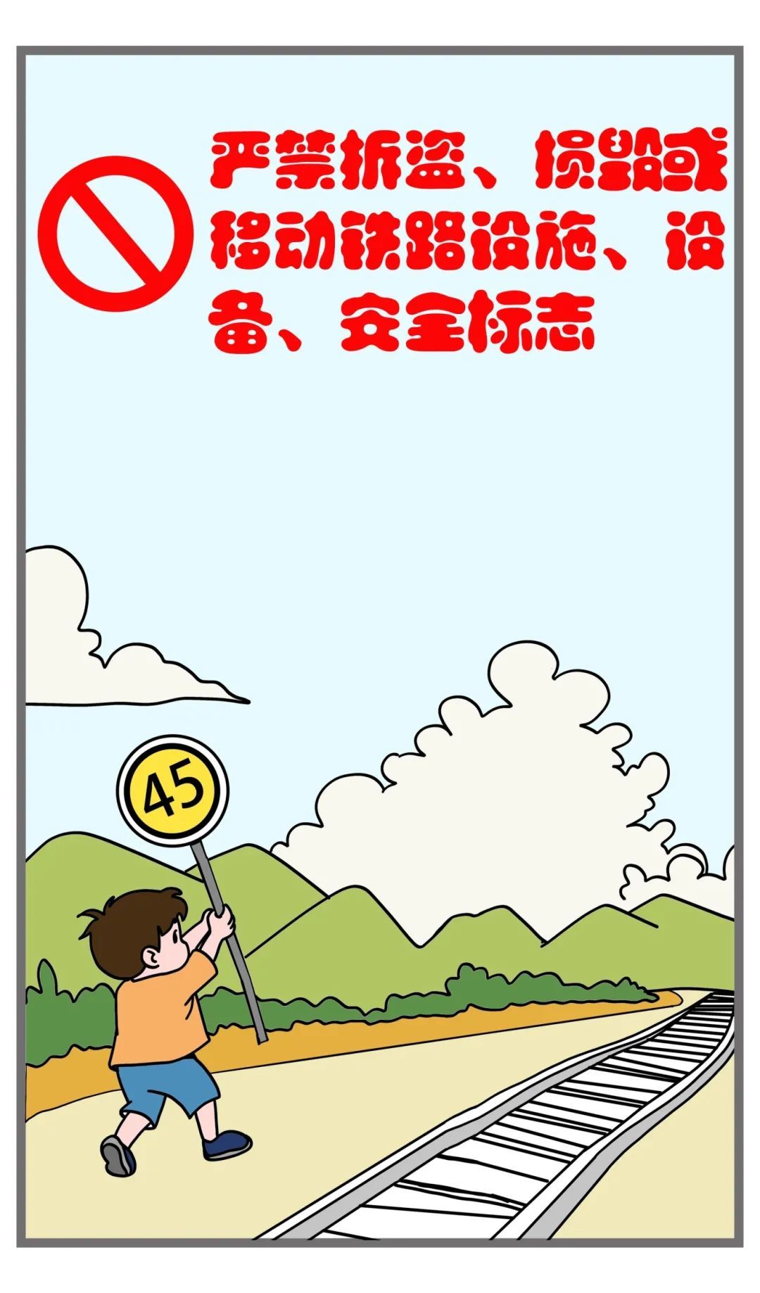 《铁路安全管理条例》第七十七条第六款规定 禁止实施下列危害铁路安全的行为:拆盗、损毁或者擅自移动铁路设施设备、机车车辆配件、标桩、防护设施和安全标志。