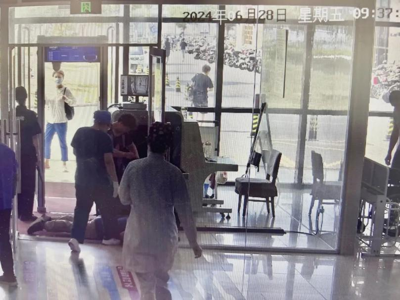 医院入口患者晕倒急诊医护火速响应