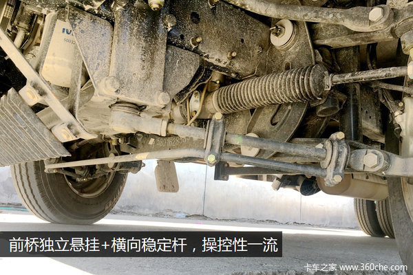 前桥采用独立悬挂+横向稳定杆,除了绿卡短暂采用外,现在的主流4米2平头轻卡没有任何一家批量推出前独立悬挂车型。