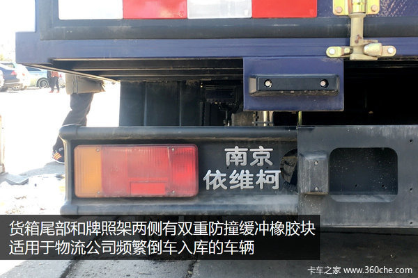这款车采用一体化尾灯,货箱尾部和牌照架两侧都有双重防撞缓冲橡胶块。