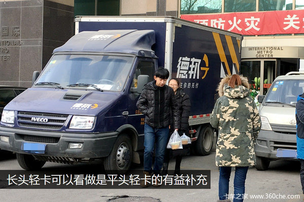 笔者在一个小区里见过德邦现有的长头依维柯轻卡配送货物,其良好的机动性让人印象深刻:基本上大型轿车能去的地方,长头轻卡就可以去。