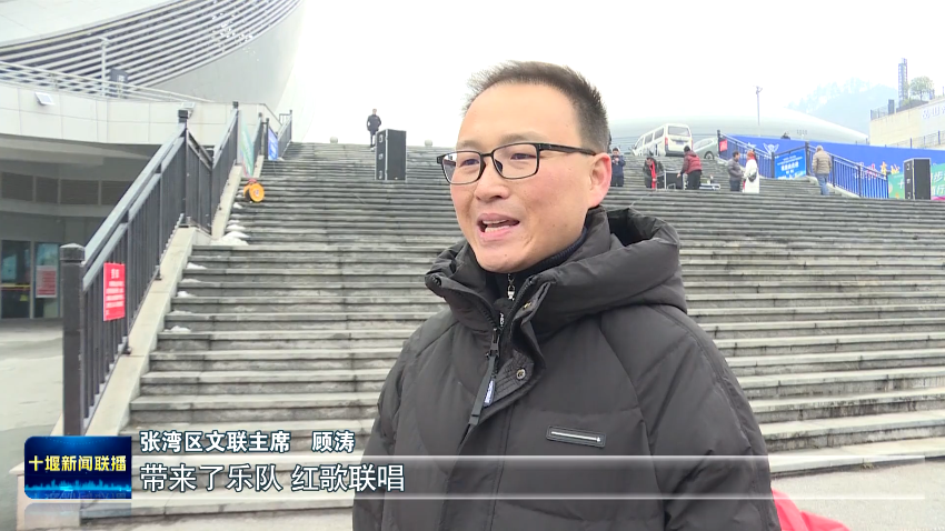 张湾区文联主席顾涛介绍,他们带来了乐队红歌联唱,4家非遗体验项目,近80人现场为运动健儿们加油助威,希望大家在新的一年里越来越好,也希望十堰和东风发展越来越好。