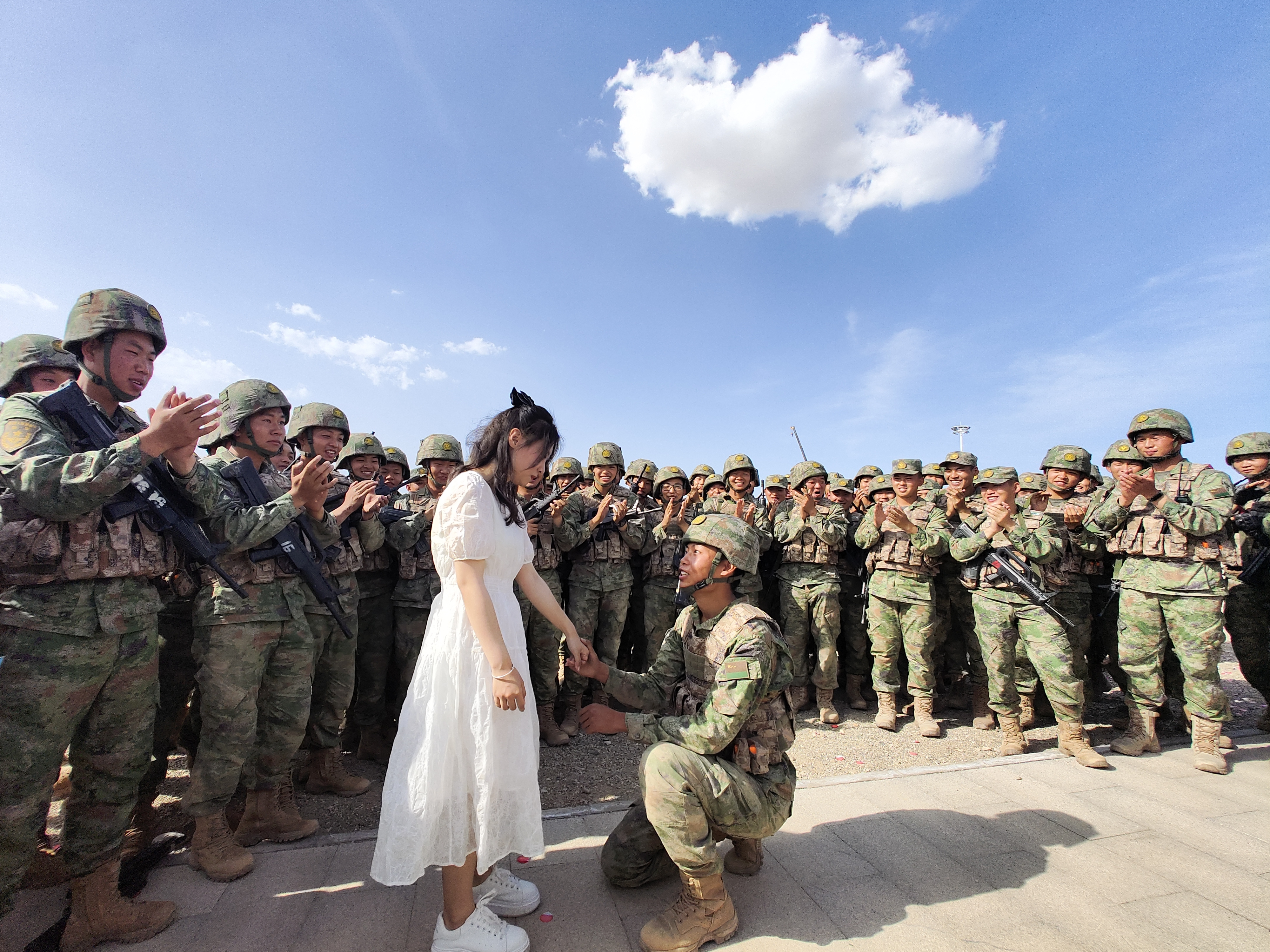 这是一场跨越3570公里的追爱之旅,这是一次现实版的“山楂树之恋”。柴雨萌家住安徽省宿州市萧县,为了给在新疆军区某综合训练基地服役男朋友刘千龙过一次特殊的生日,她与部队一起瞒着刘千龙过了一次特殊的生日。