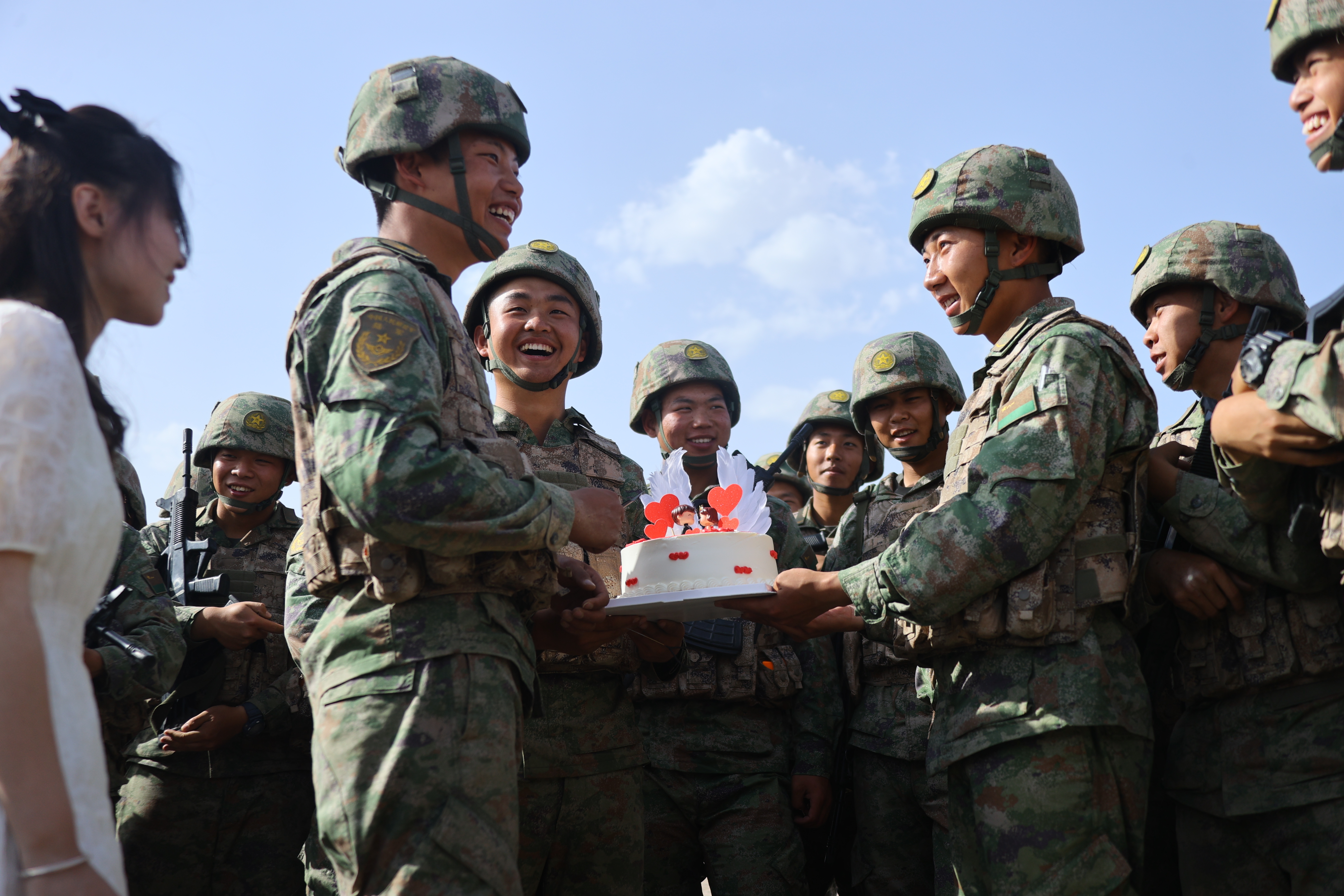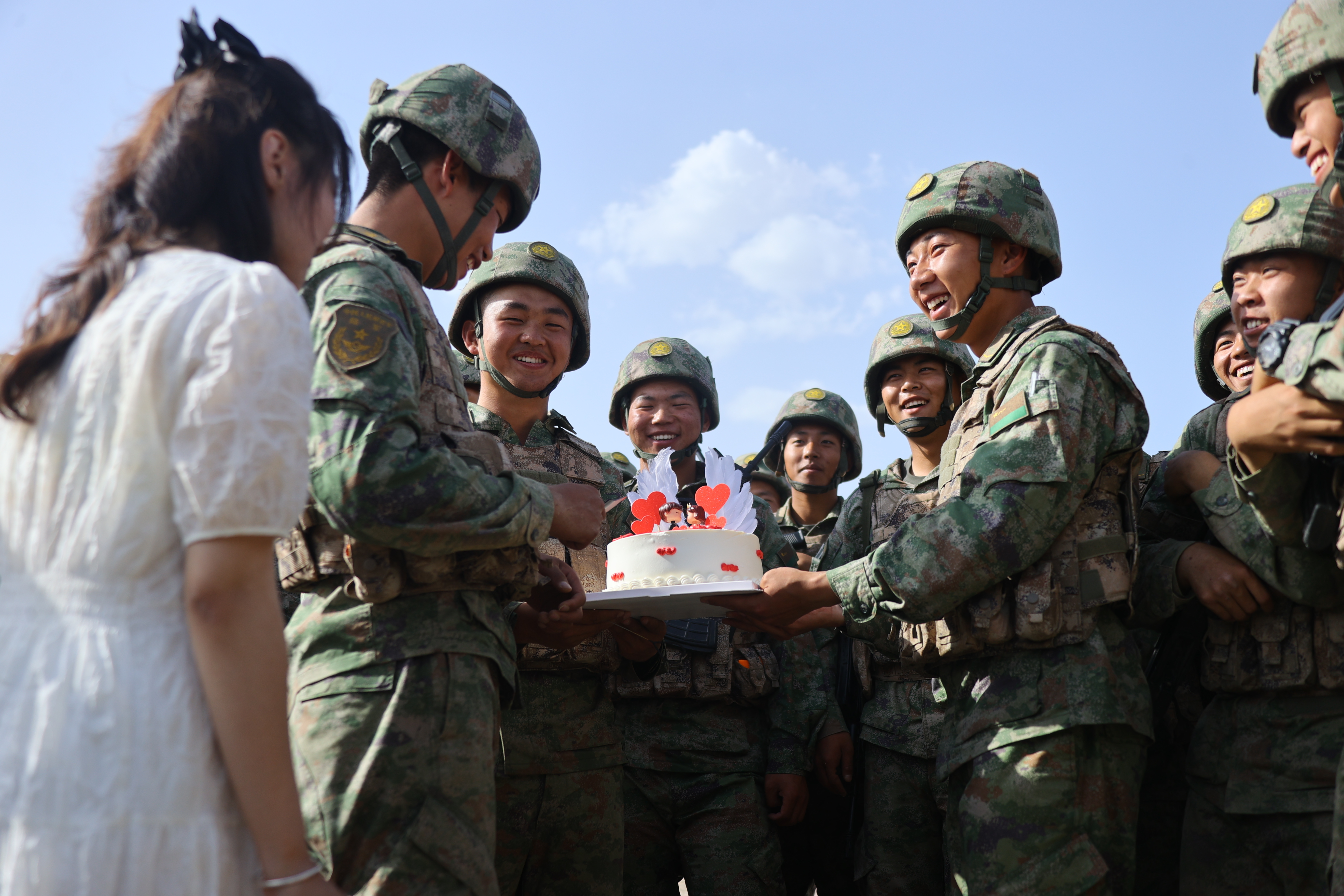 点起蜡烛,默许愿望,这对恋人的手紧紧握在一起,在连队官兵的祝福声中,他们开心地像个孩子。