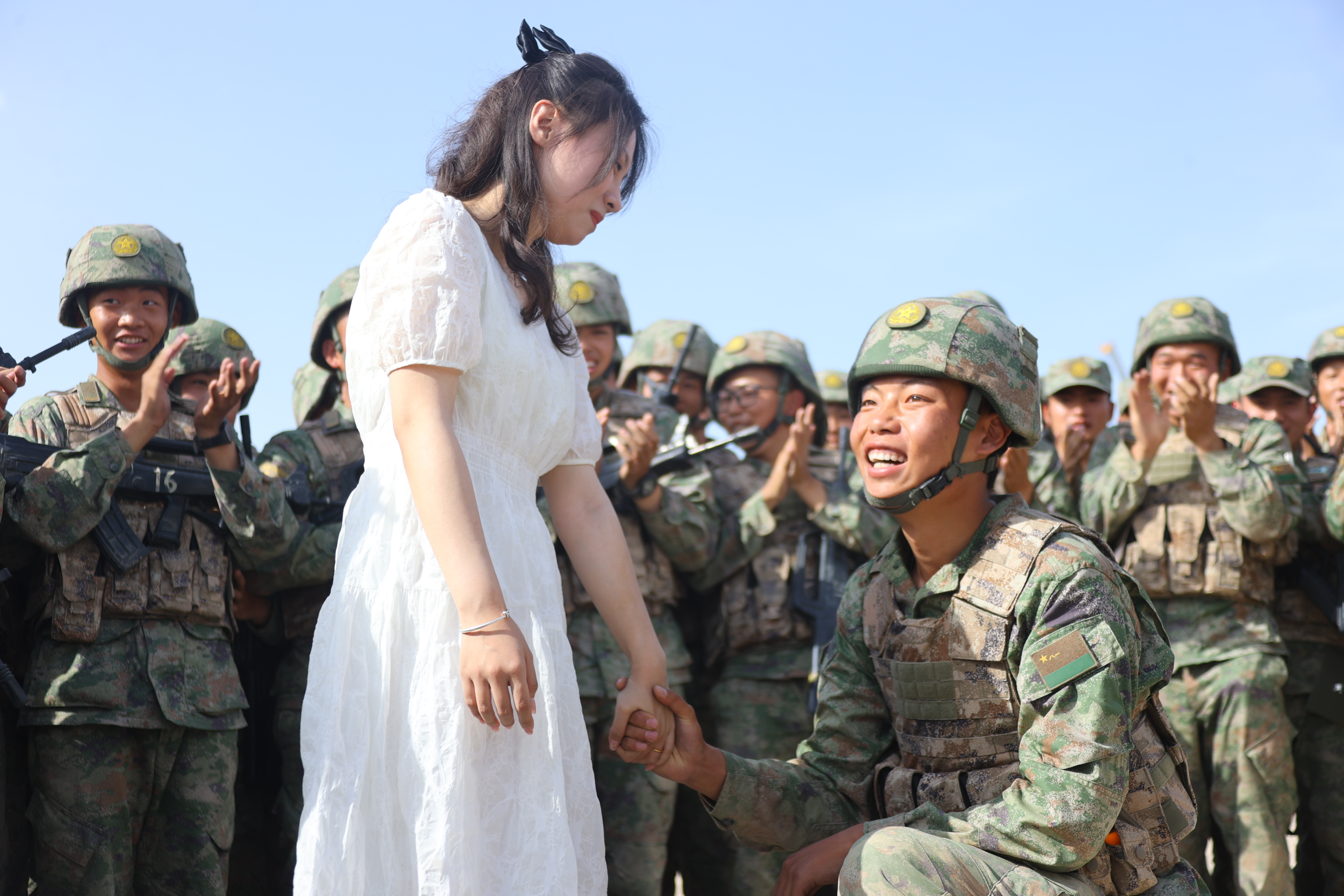 此时,刘千龙正在进行训练,当看到自己心爱的姑娘就站在眼前时,有些不知所措,开心、激动都来得太突然。这一刻,他感觉在做梦。
