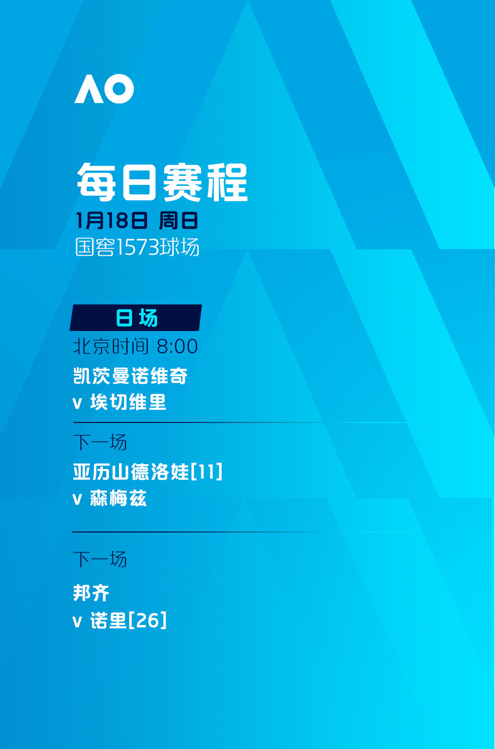 2026年澳大利亚网球公开赛正赛今日正式开打,赛事将于1月18日至2月1日在墨尔本公园举行。