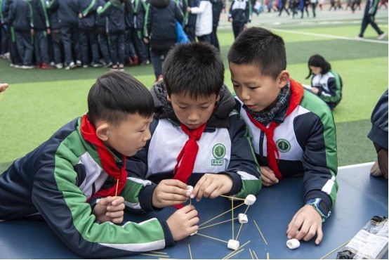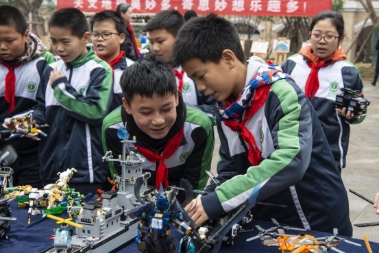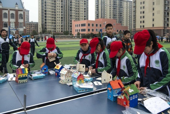 还有同学们把培植的植物装饰成艺术品;将废旧纸盒、电池、光盘等“变废为宝”,制作成可拨动的钟面或是别具一格的乐器,巧妙搭建出温馨的房屋建筑等。