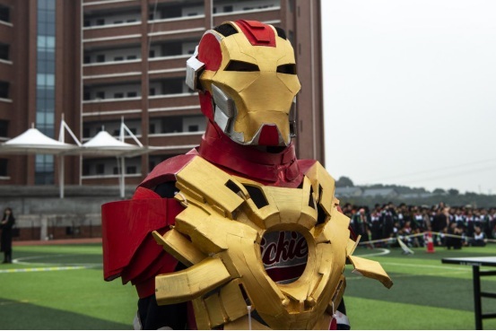 在科技作品展演中,炫酷钢铁侠吸人眼球,呈现了艺体组集体智慧。